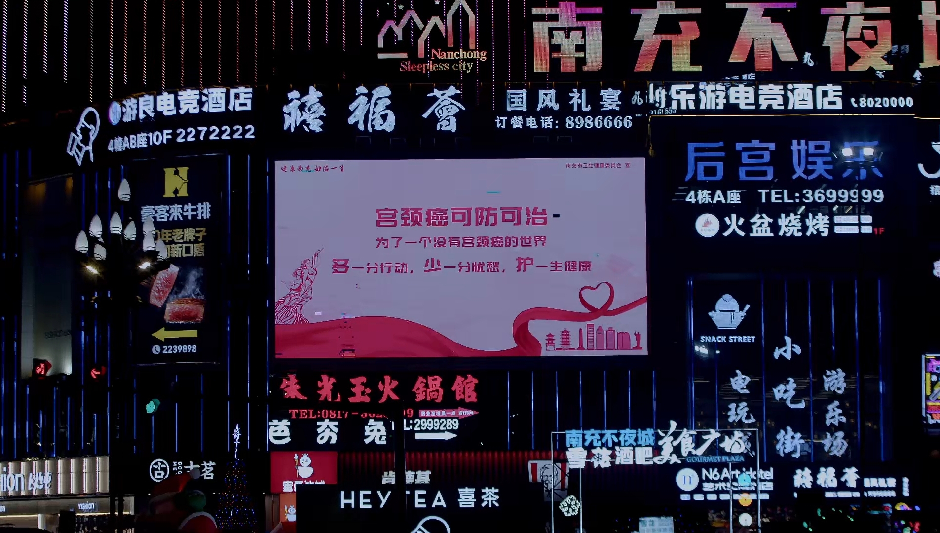 户外大屏宣传宫颈癌防护知识。(摄影:陈强)