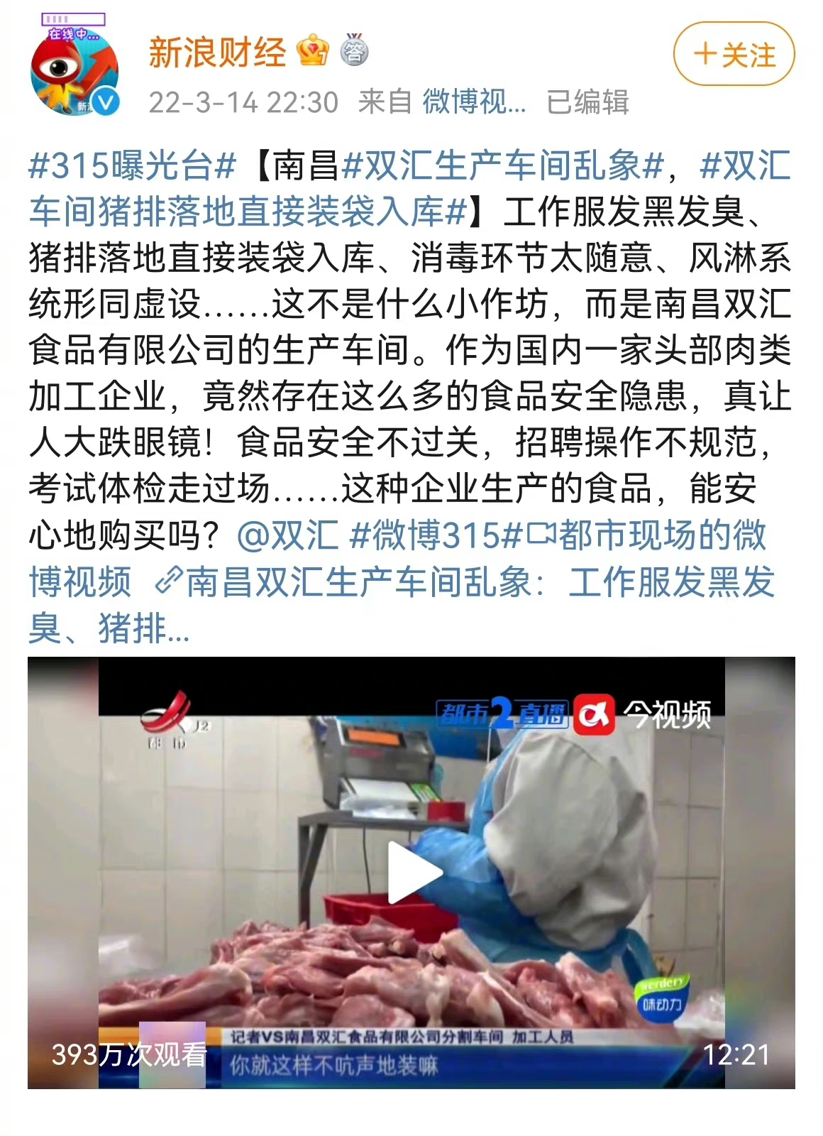 对此,3月15日,双汇发展回应称,“我们已经成立了联合调查组,进驻到南昌双汇对此事进行调查,调查需要一定的时间,目前暂未有完整的调查结果。”