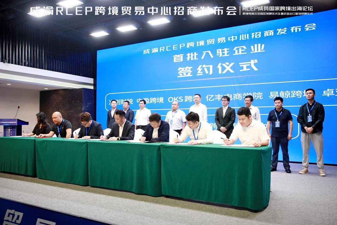 4月20日,成渝RCEP跨境贸易中心(下称“跨贸中心”)招商推介会在重庆两江新区两路果园港综保区举行。活动中,重庆市经信委、市商务委分别授予跨贸中心“重庆造出口基地”和“重庆跨境电商示范区”。其中,“重庆造出口基地”是目前重庆唯一一个赋能“重庆造”产品出海发展的基地。