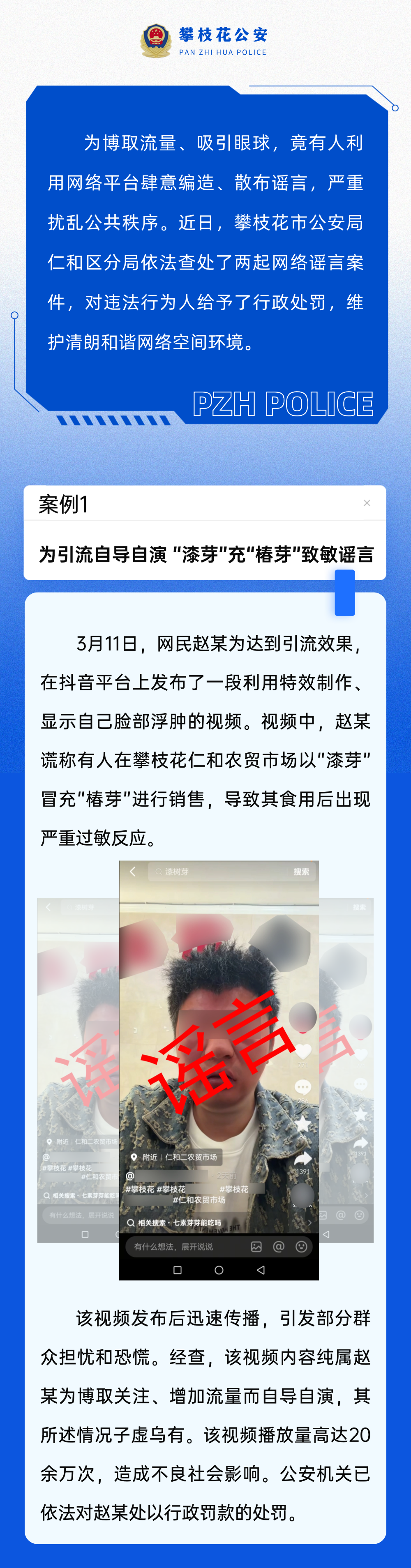攀枝花通报两起造谣案例,两人被行政罚款