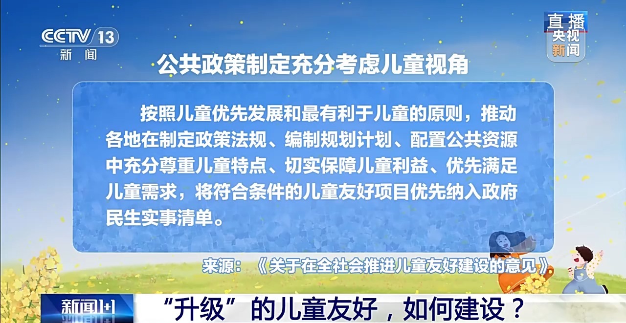 3月17日,国家发展改革委、国务院妇儿工委办公室对外发布《关于在全社会推进儿童友好建设的意见》。从五年前的“儿童友好城市建设”试点,到如今我国全面开展儿童友好建设。从城市到乡村,从阶段性建试点到常态化建机制。“儿童友好”升级在了哪里?又该如何建设?本期《新闻1+1》为你解读分析。