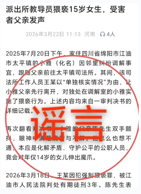详情:4月9日,绵阳网警公布了6起打击网络谣言典型案例。