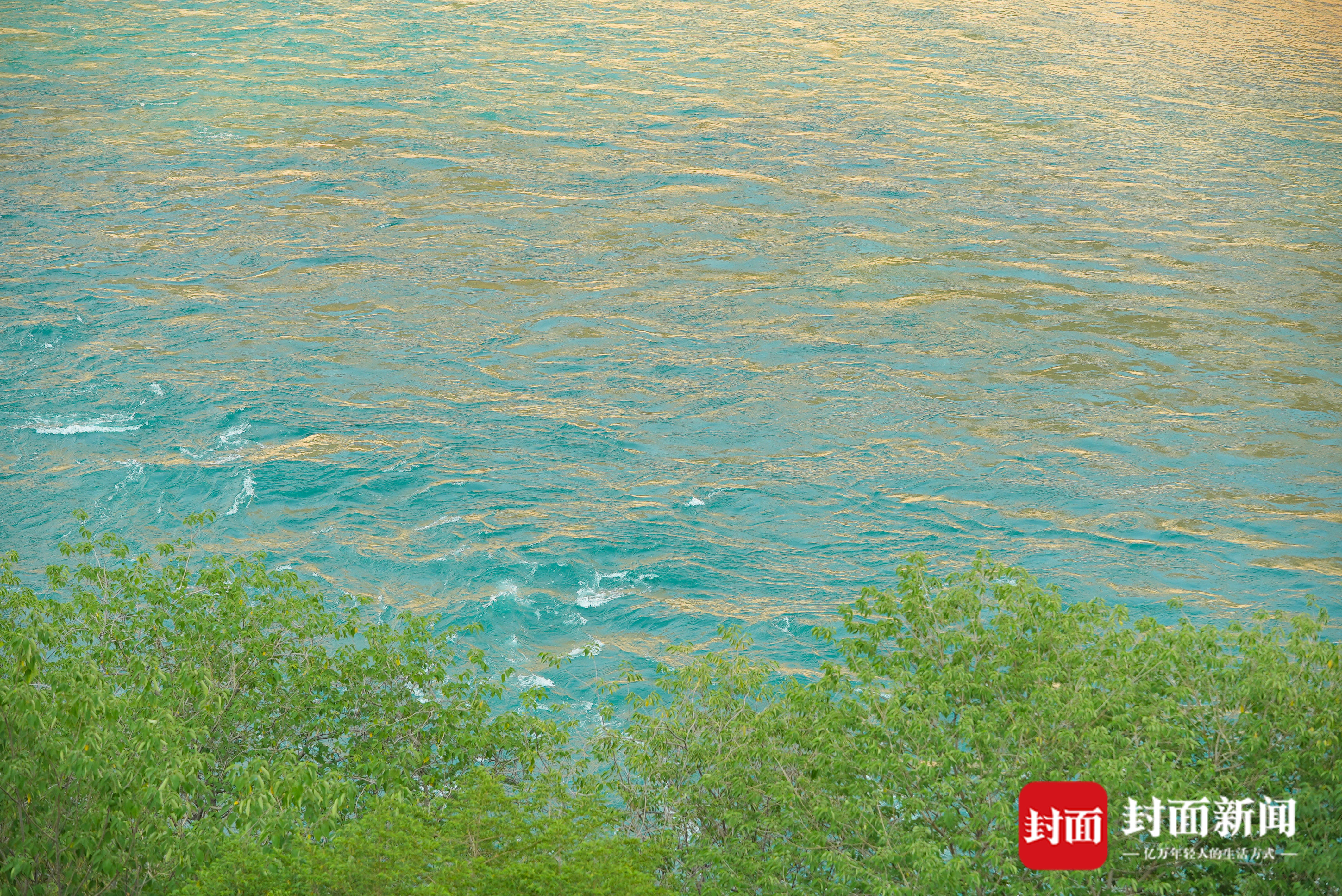 奔流而过的金沙江水也是蓝色的