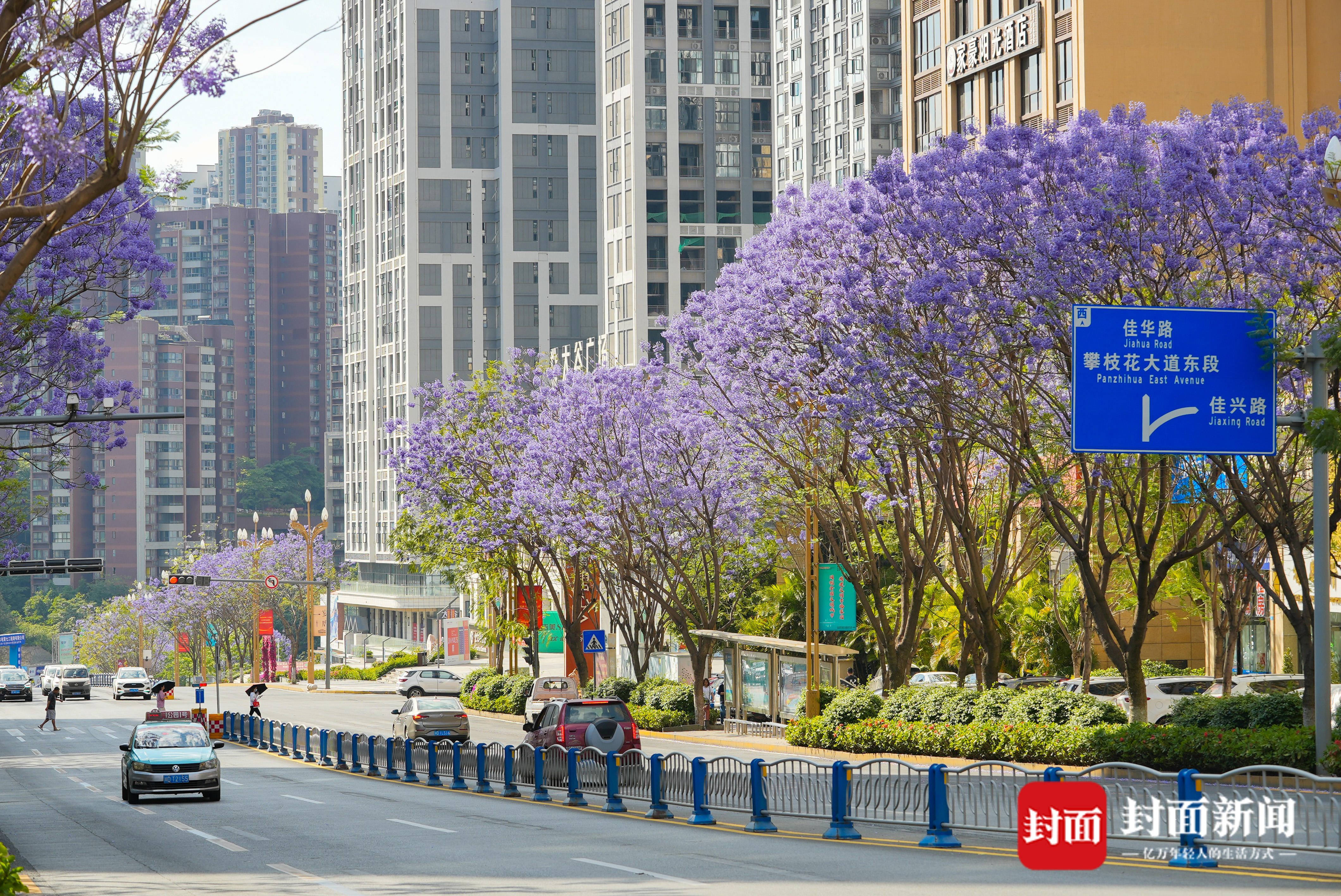 “最美人间四月天”。仲春四月的四川攀枝花,阳光灿烂,花开正好。4月,是蓝花楹怒放的时节,城市的街道,被装扮成了浪漫的紫色花海。