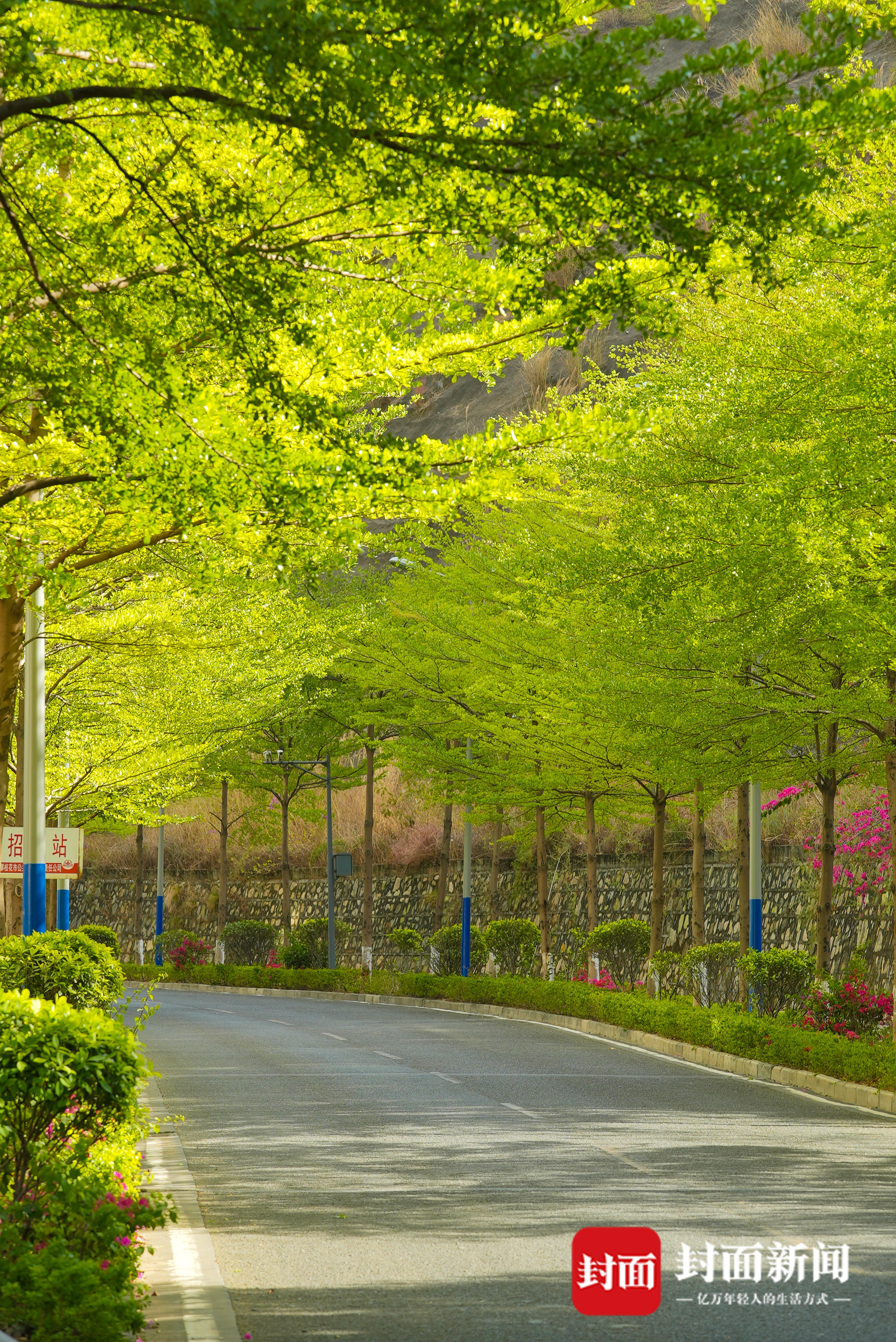 4月,路边行道树萌发新绿