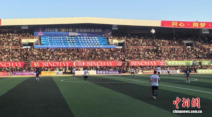 2025年“喀什杯”足球超级邀请赛(简称“喀什杯”)正在岳普湖县举办。连日来,能容纳约1.7万名观众的体育场几乎座无虚席,看台上男女老幼的呐喊声此起彼伏。40岁的岳普湖县业余足球选手凯赛尔·塔依尔说:“在这里,足球就是最受欢迎的运动。”