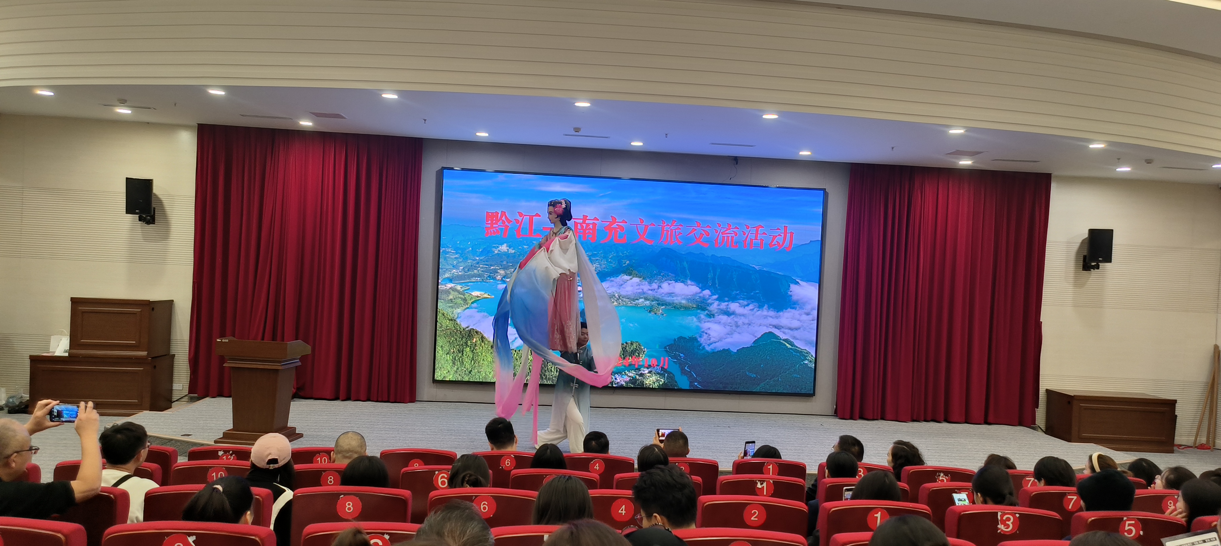 唱好川渝双城记,打好文旅融合牌,10月24日,重庆黔江区和四川南充市举行文旅交流活动。来自重庆阿蓬江畔的黔江,带着峡谷峡江的自然和清新,带着土家族苗族的豪迈和柔情,带着黔江鸡杂的麻辣和酸香,走进将帅故里锦绣南充,向南充人民展示了“武陵明珠”黔江的神奇神秘和神秀。