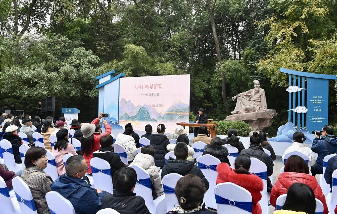 12月22日冬至,新一期的“东坡大讲堂”在眉山三苏祠东坡盘陀像前开讲。本期邀请到“苏东坡传说”非遗传承人、三苏祠学术委员会委员王晋川,带来《人间有味是清欢——东坡美食谈》。