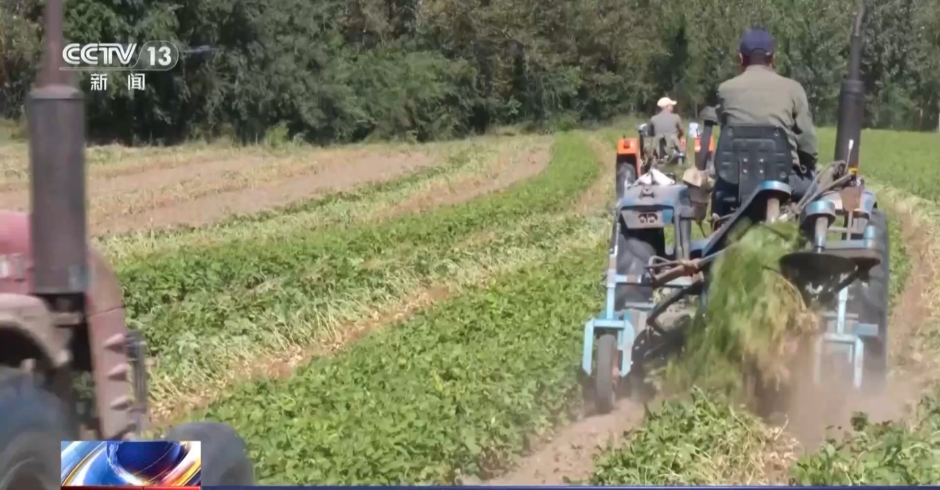 辽宁锦州义县33万亩花生开始收获,在张家堡镇的花生种植基地,多台收割机正在田间穿梭,随着机械轰鸣,一株株花生破土而出。