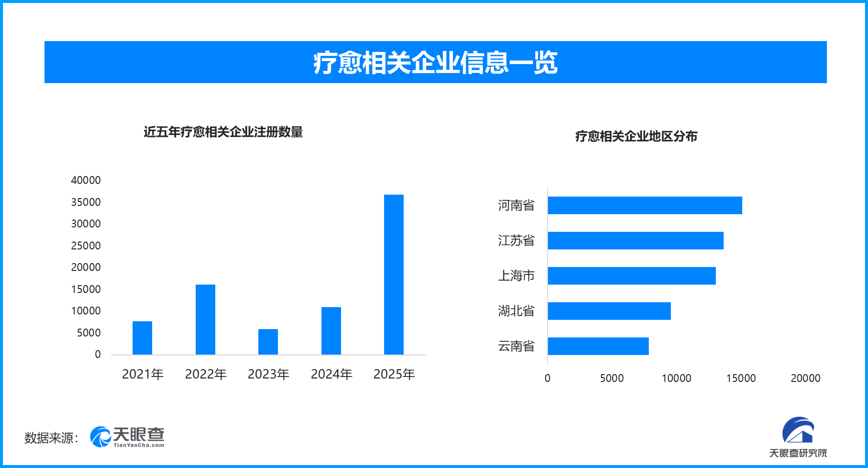 从区域分布来看,河南省、江苏省、上海市疗愈相关企业数量位居前列,三个省市数量总和超过4.1万家,占企业总数的35.52%。