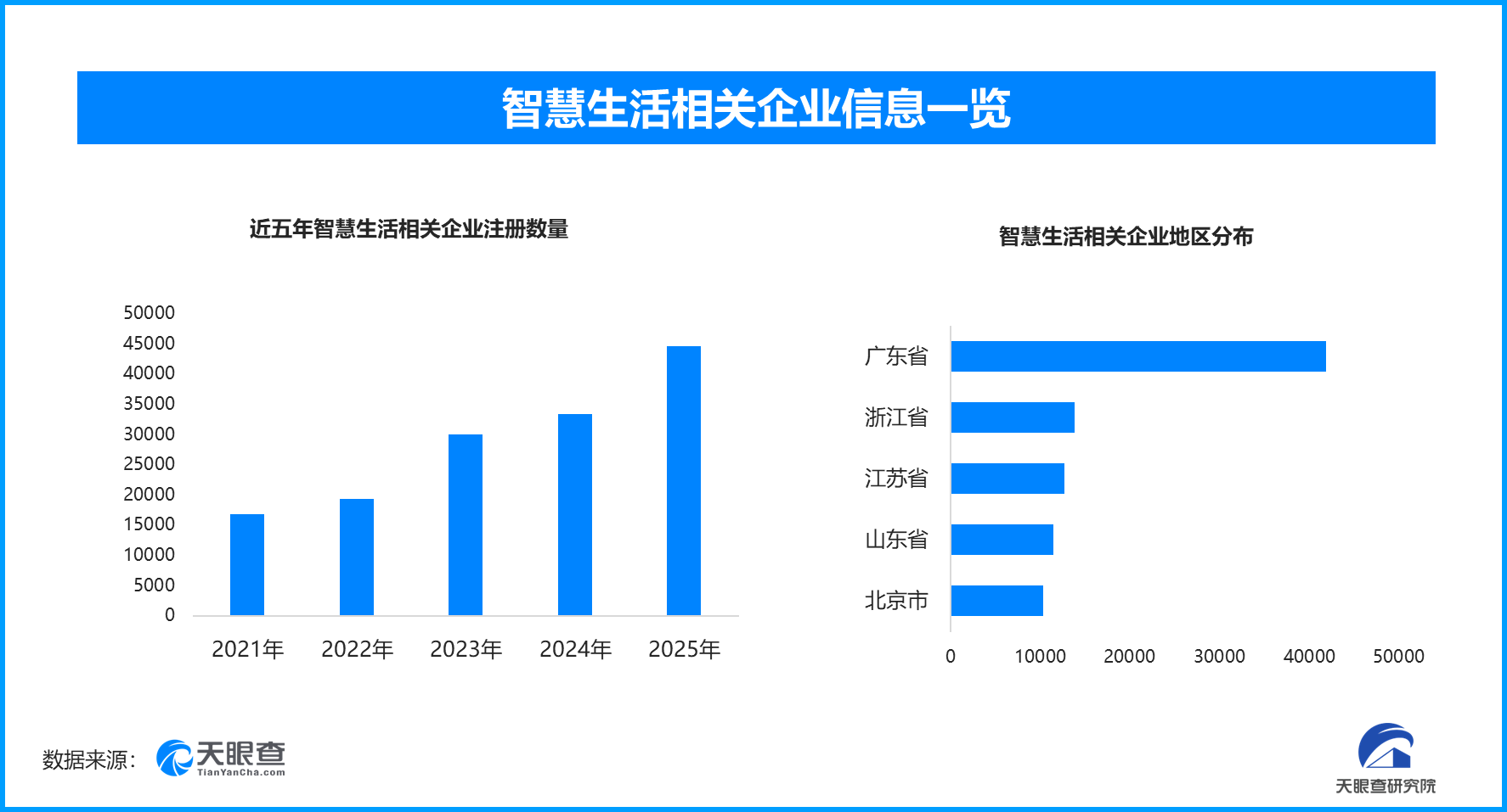从区域分布来看,广东省智慧生活相关企业数量位居首位,以超4.1万余家相关企业数量占到全国相关总数的20.56%。排在其后的是浙江省、江苏省、山东省和北京市。