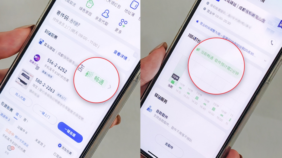 据了解,该功能显示分为“畅通、忙碌、拥挤”三个状态,快递进入驿站后,消费者登录菜鸟APP可在首页提前看到站点状态为畅通或忙碌。点击驿站信息后,还能实时查看当前取件预估时长,帮助消费者合理安排取件时间,错峰取件不用等。