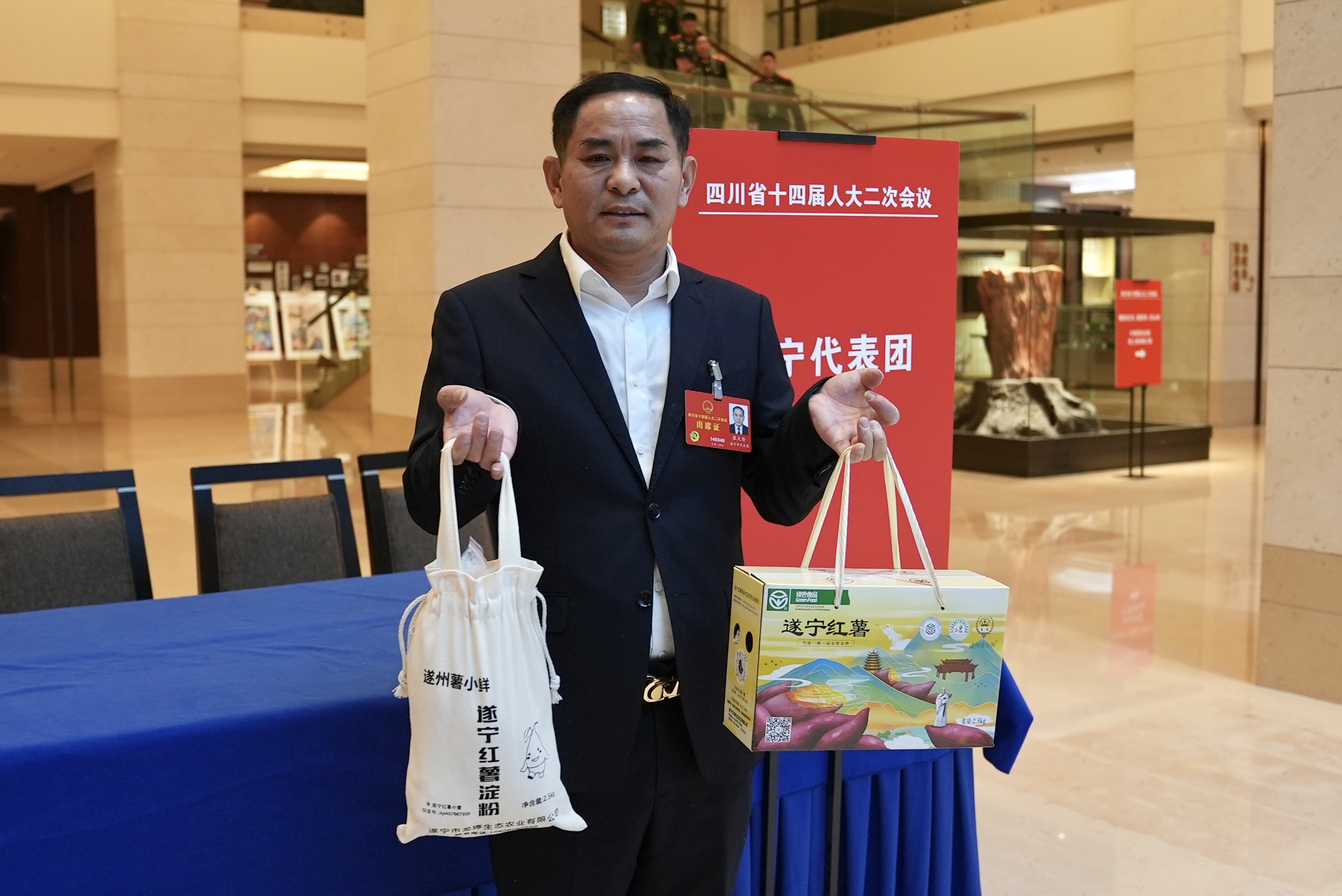 今年,四川省人大代表张天伦又提着遂宁红薯上两会了,作为遂宁市安居区博天苗木种植农民专业合作社理事长,他每年都会带着红薯上会,讲述这个小产业带来的大空间。