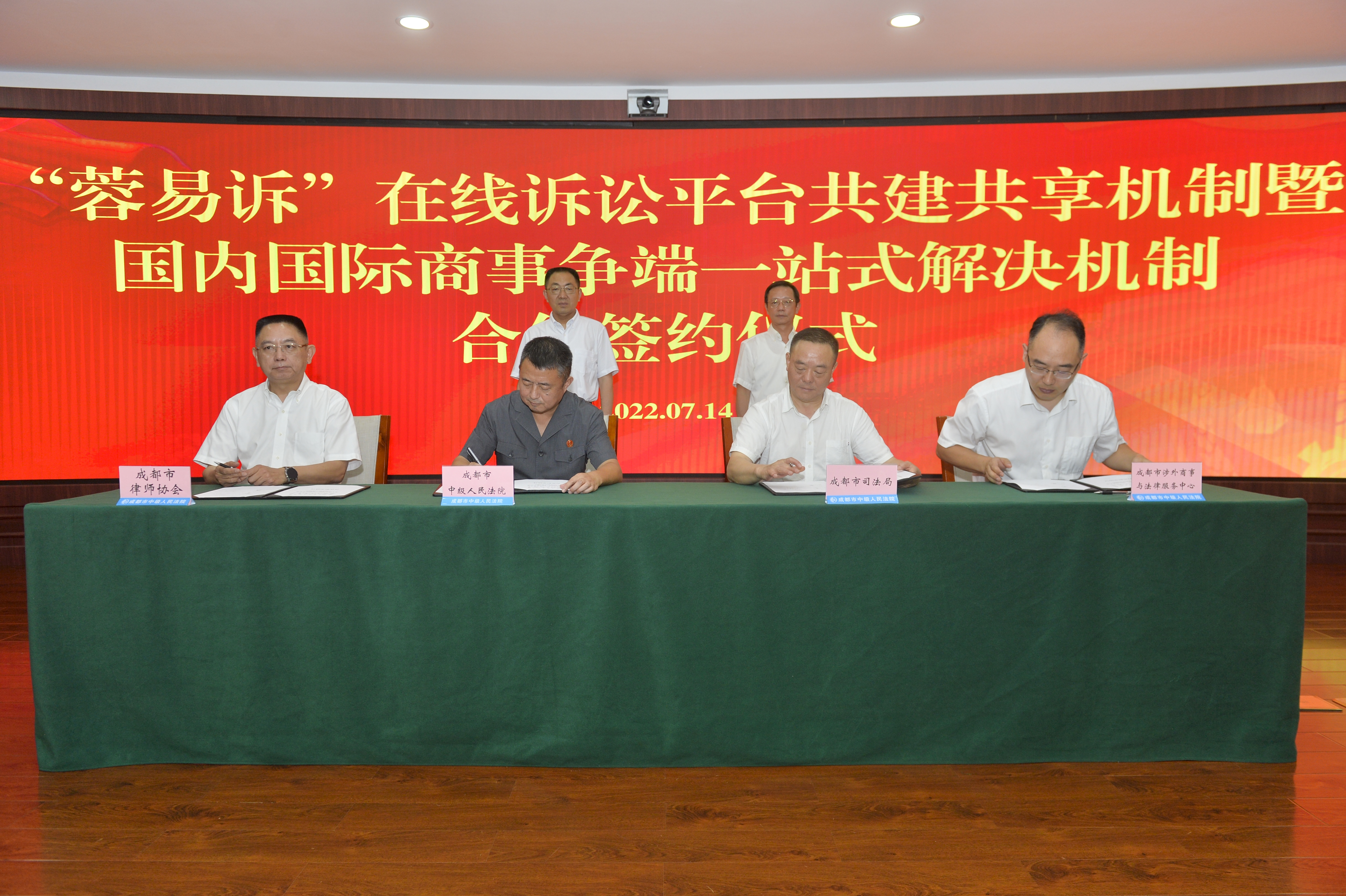 7月14日,成都中院、成都市司法局、成都市律师协会、成都市涉外商事与法律服务中心在成都中院举行国内国际商事争端一站式解决合作机制的签约仪式,共同签署《关于建立国内国际商事争端一站式解决机制的合作框架协议》。