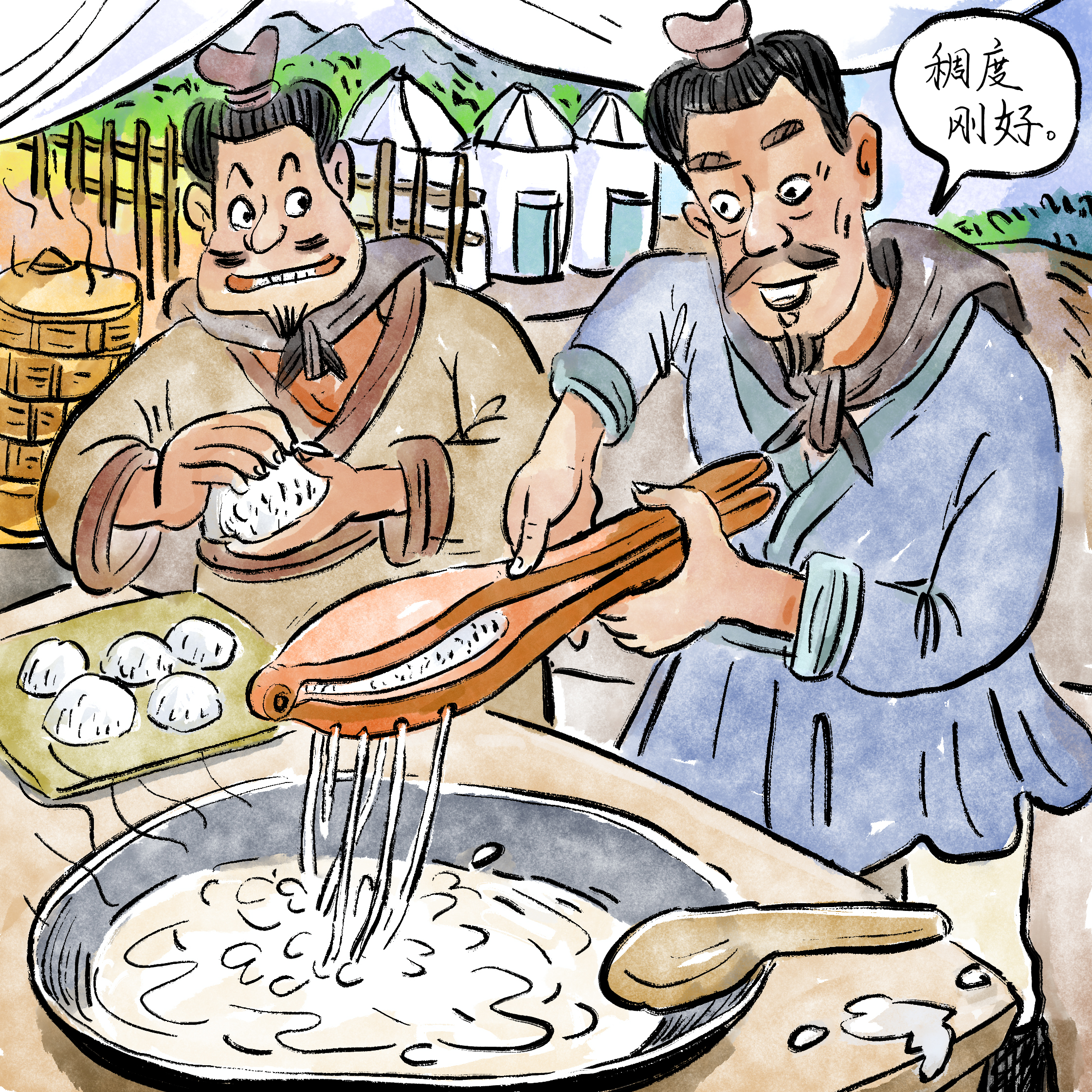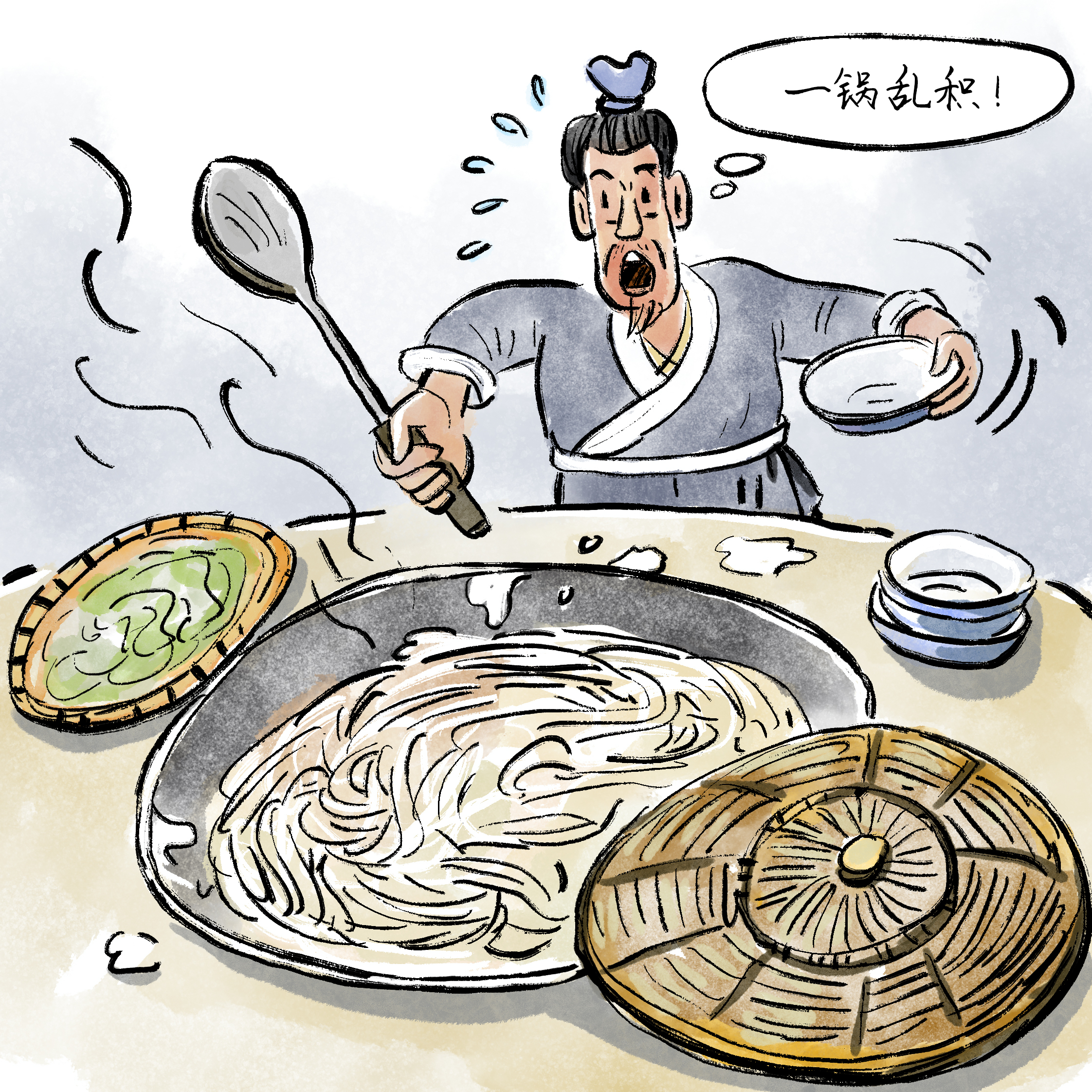 相传3000多年前,我国西北地区的先民就曾用小米制作出一种条状食物。据《齐民要术》记载,此类食物名为“乱积”,意思是一大锅条状物堆积在一起看起来很凌乱。但可想而知,这种由小米磨成的“粉条”口感必然不如小麦面粉做成的面条,待小麦种植普及后,此类吃法就从西北地区慢慢消失。