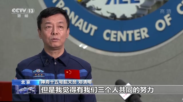 神舟十五号航天员 邓清明:压力是肯定有,但是我觉得有我们三个人共同的努力,有天地之间大协作,有地面的支持,这种压力不算什么。我还是喜欢干有挑战性的活,人生因奋斗而精彩,讲的就是这个意思。