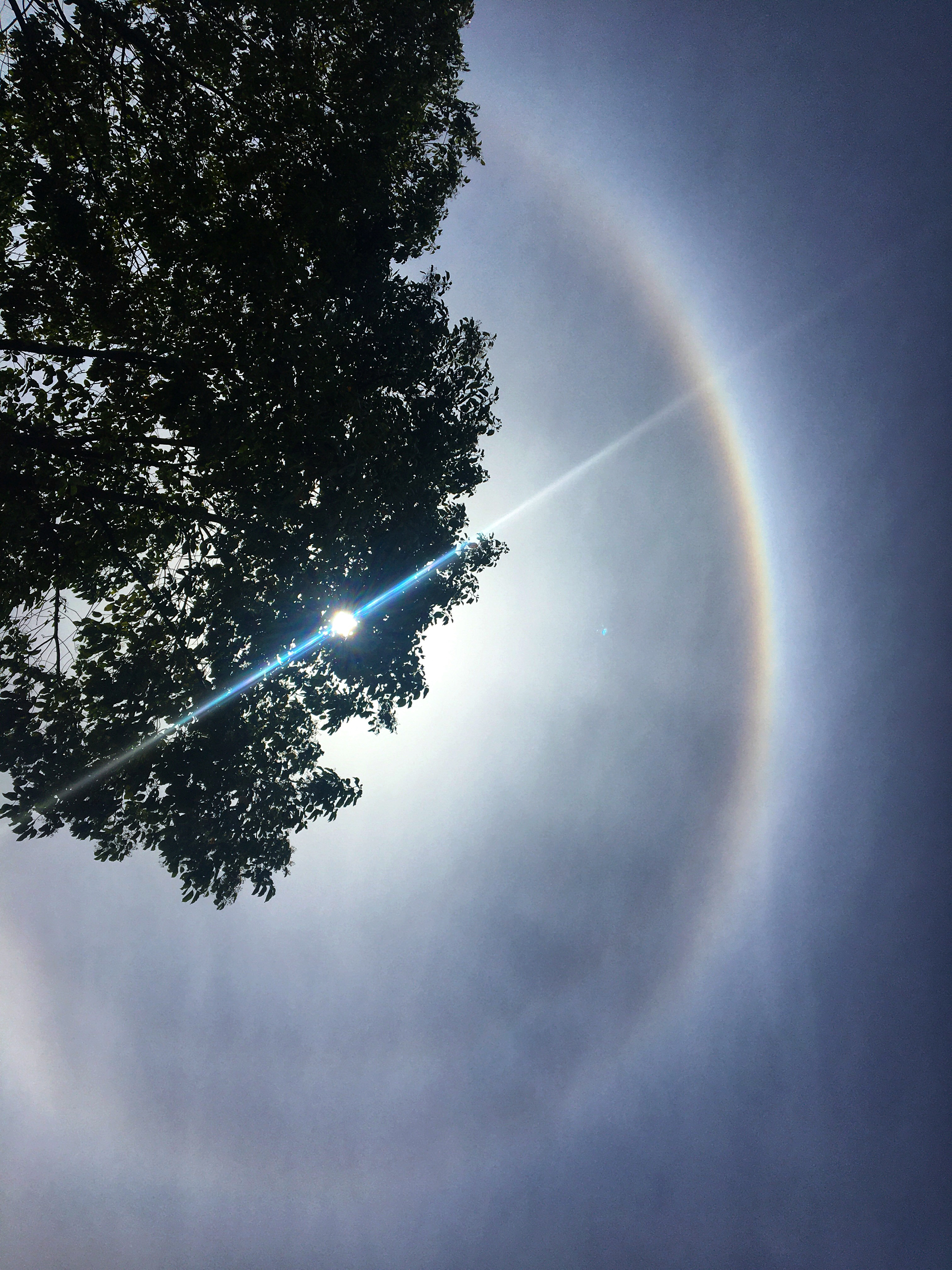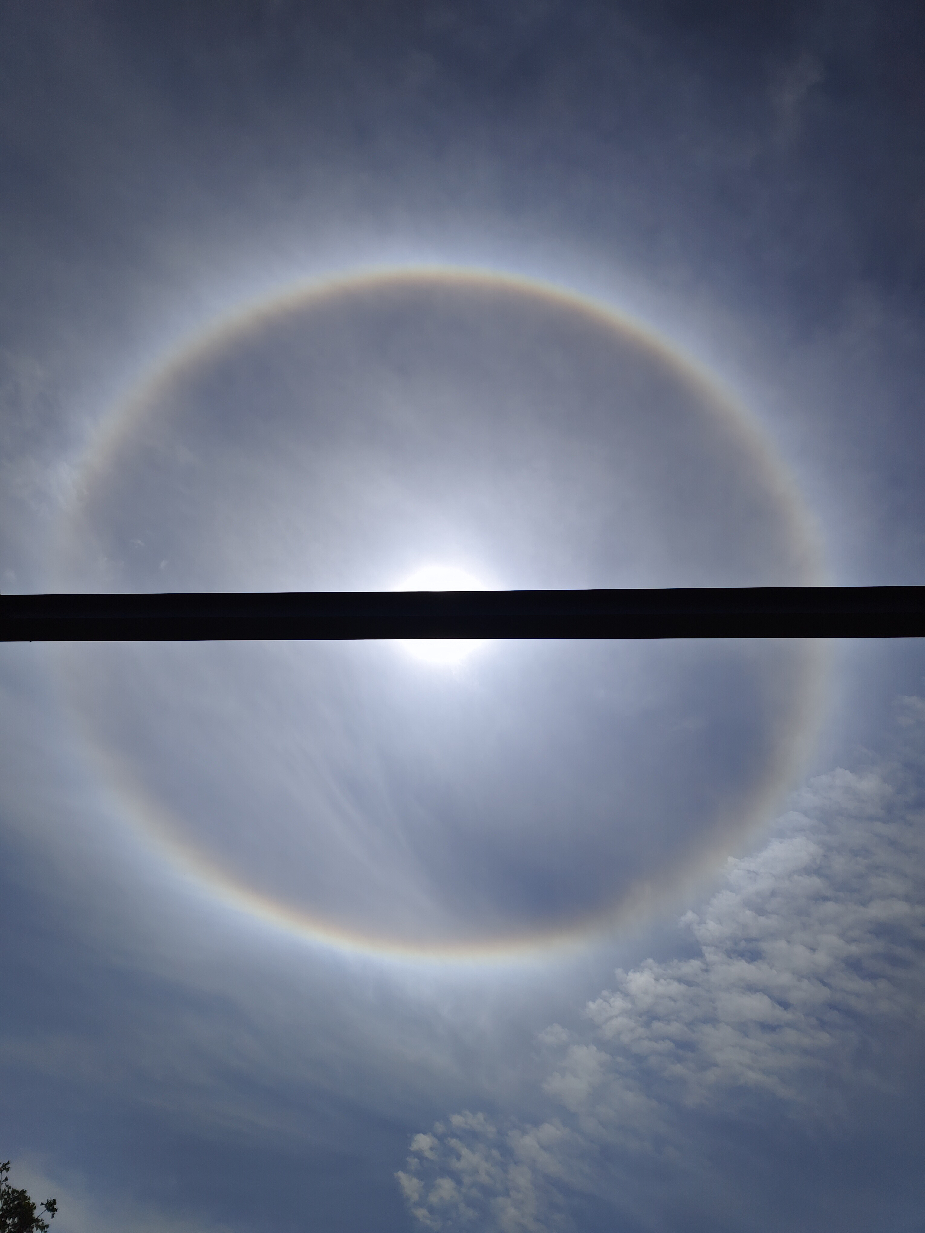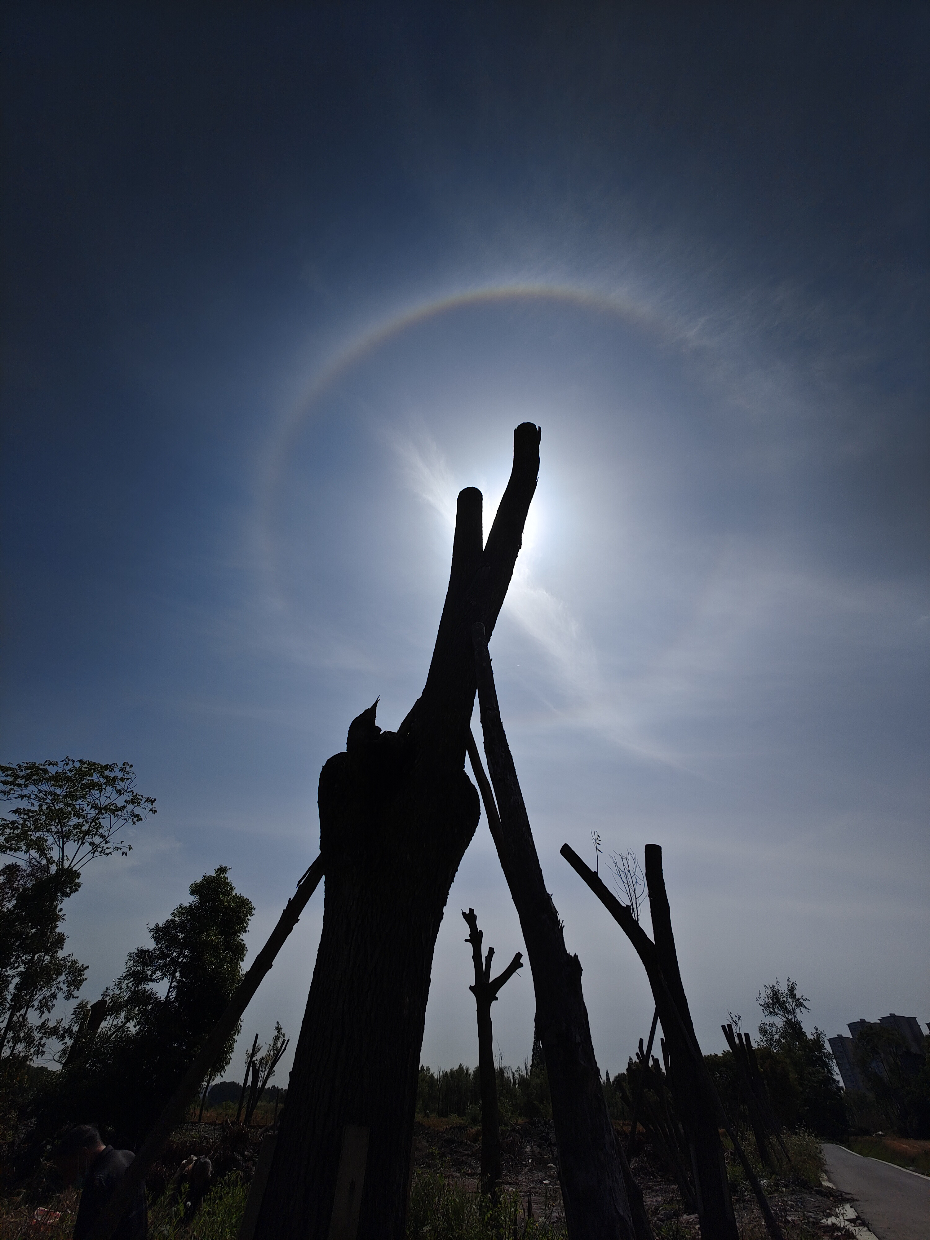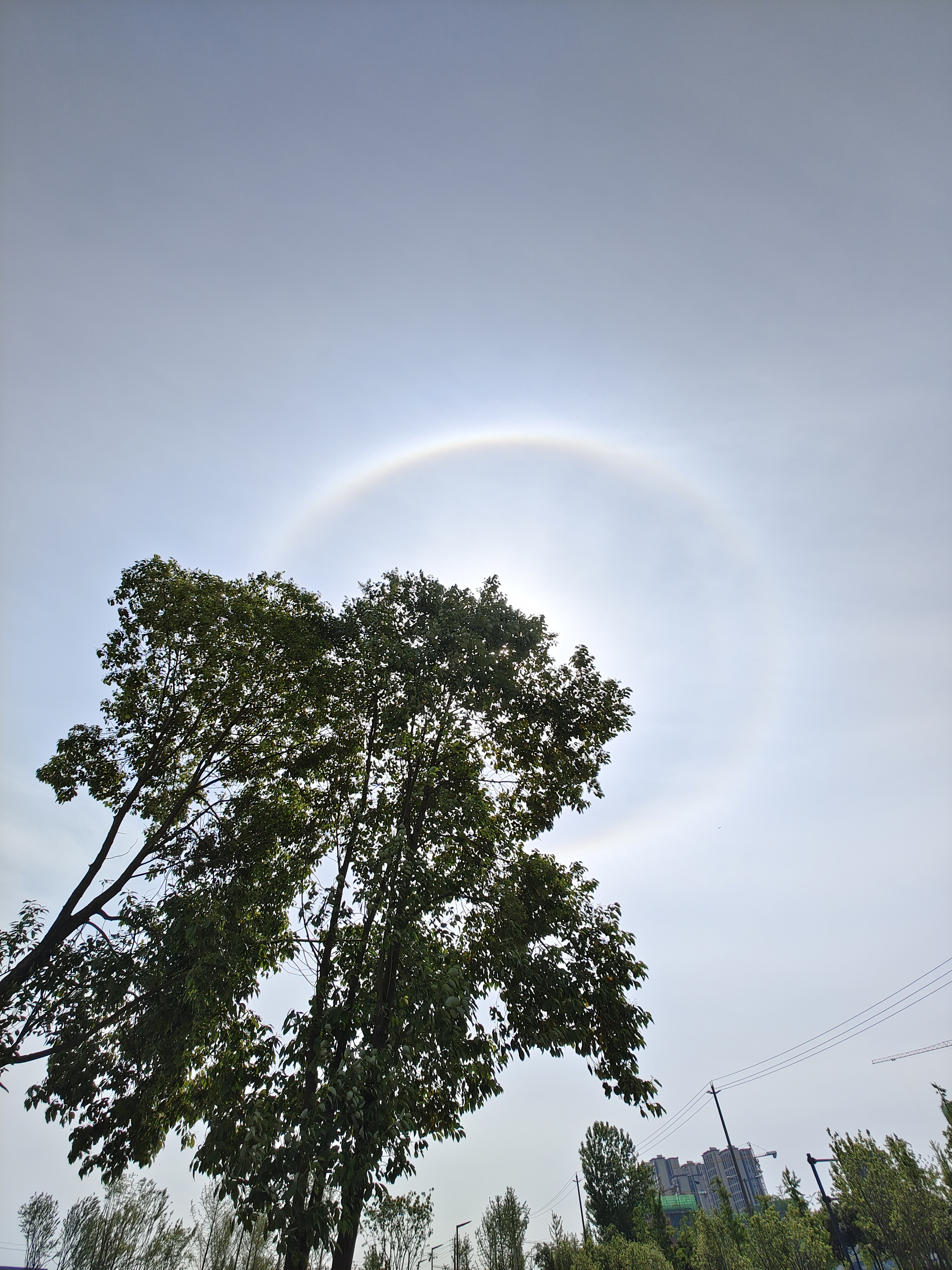 昨日夜雨过后,成都今日又迎来晴好天气。中午时分,太阳周围出现一圈日晕,给人带来惊喜。日晕又称为圆虹,是阳光透过卷层云时,折射或者反射冰晶而形成的光学现象。观看日晕时,需要找前景遮挡太阳,不能用眼睛直视,或者用手机直接拍摄太阳。