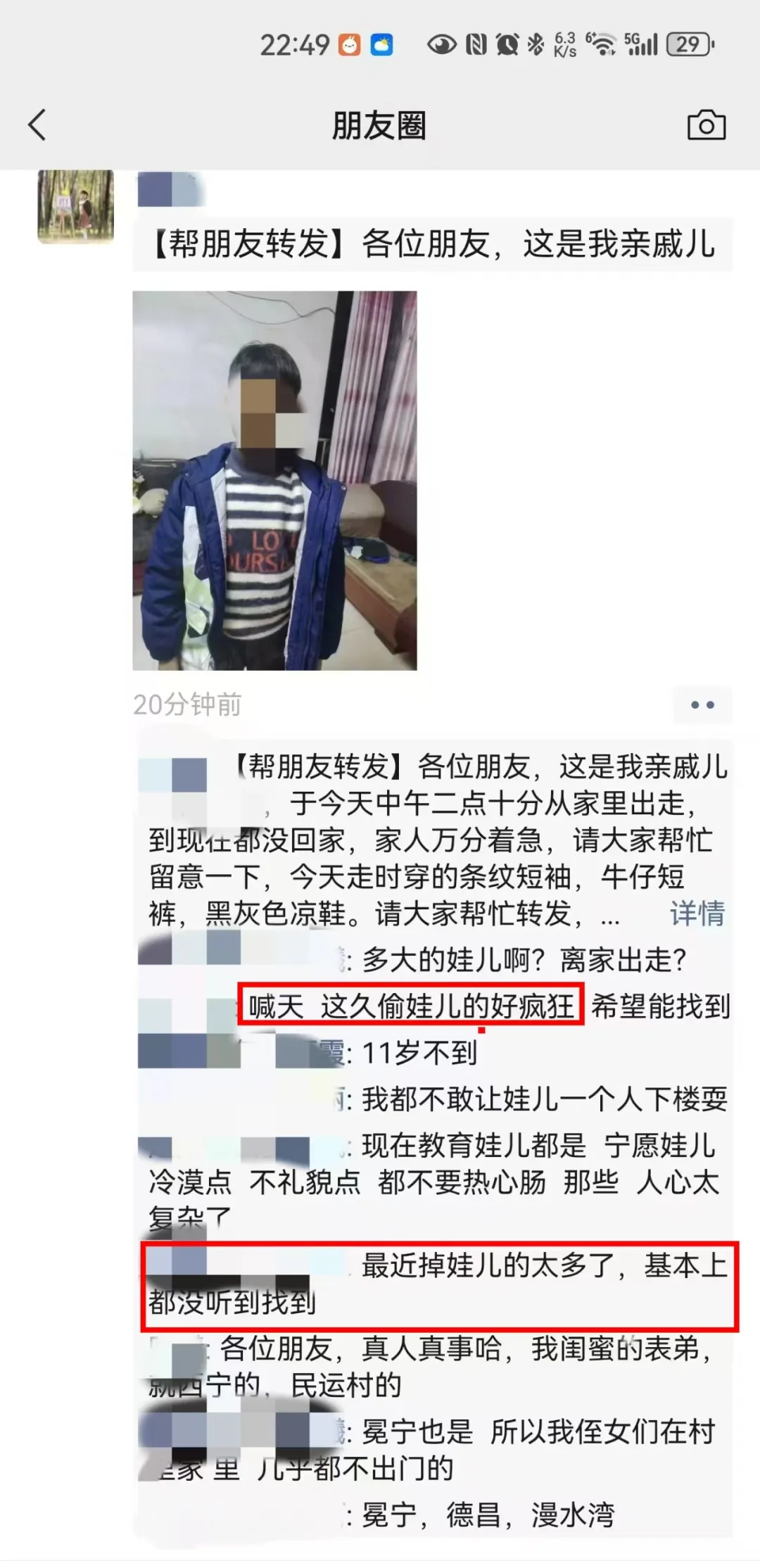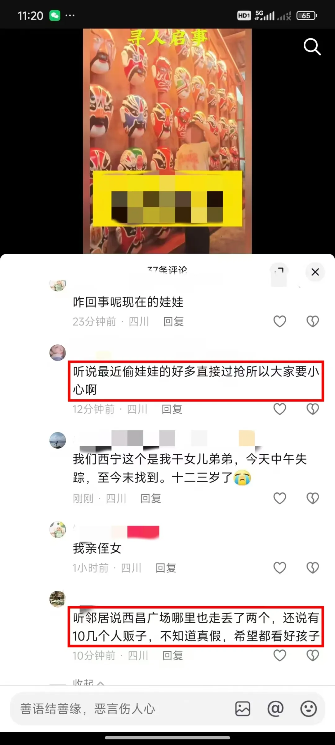 近日,在一些寻人启示的评论区中频频出现有关“人贩子”的填空式谣言,此类“谣言”不仅会干扰寻人工作的正常进行,还严重阻碍了失踪者家属获得真实有效线索。