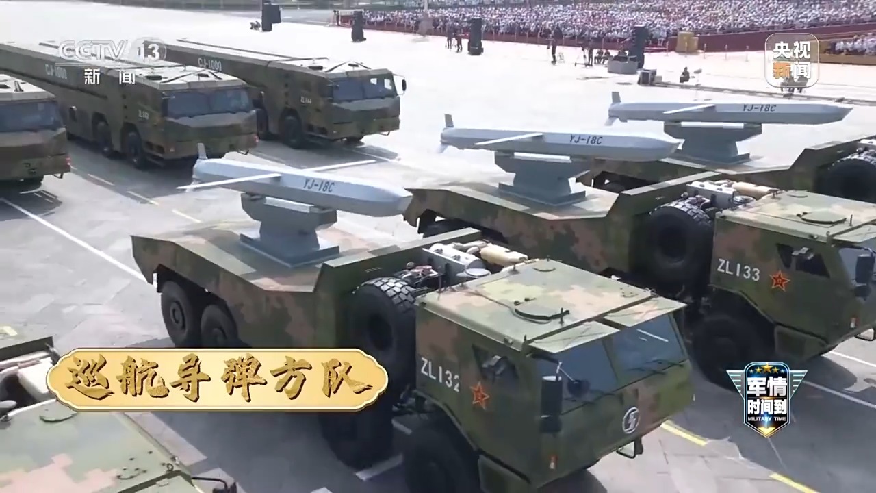 拉开战略打击群序幕的是巡航导弹方队,方队首次采取海军、空军、火箭军联合编组模式。