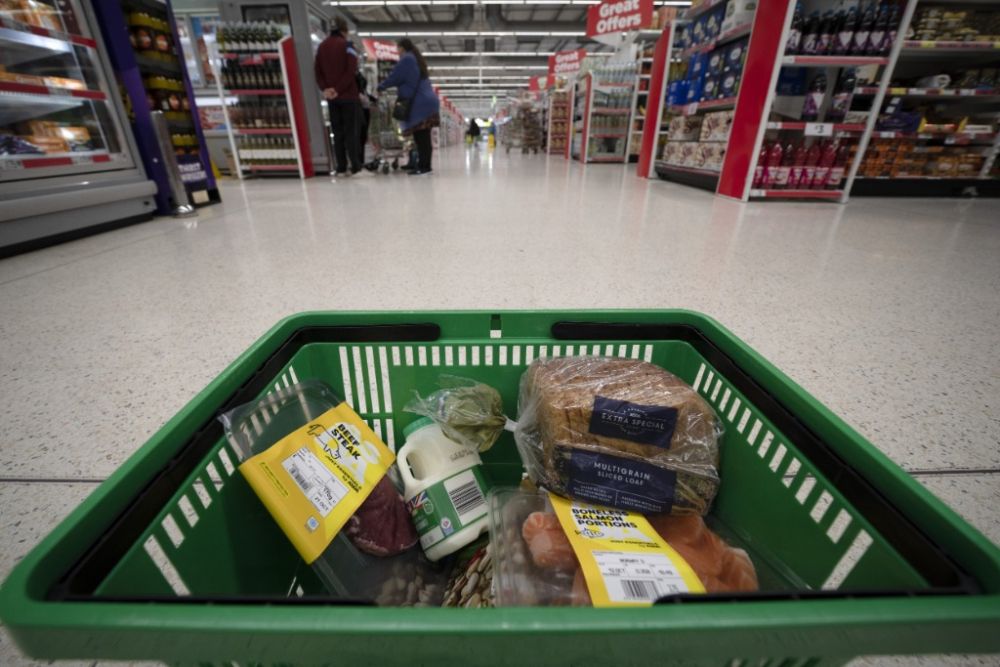 这是2022年10月7日在英国曼彻斯特一家超市拍摄的购物篮内的商品。新华社发(乔恩·休珀摄)