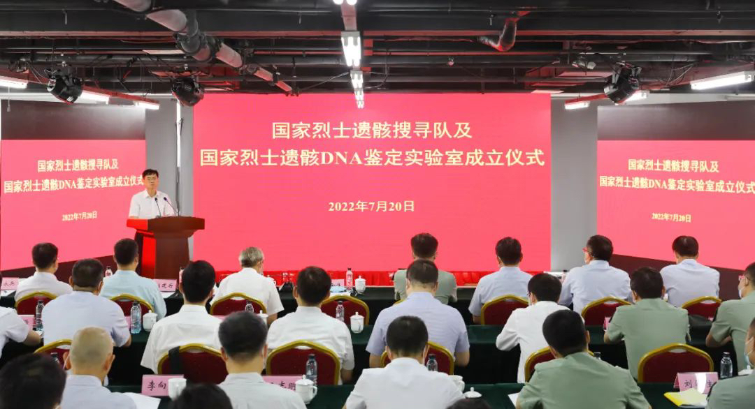 7月20日,国家烈士遗骸搜寻队及国家烈士遗骸DNA鉴定实验室成立仪式在京举行。图片来源:退役军人事务部