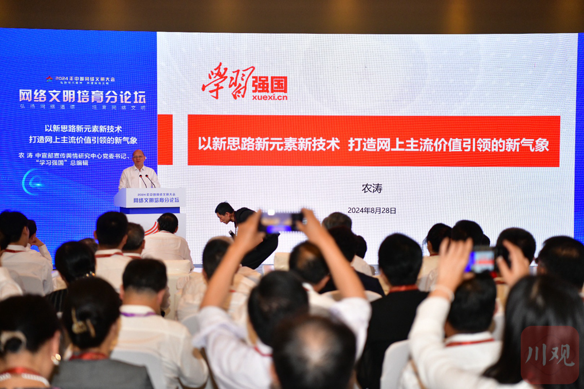 8月28日,2024年中国网络文明大会网络文明培育分论坛在成都举行。活动聚焦“弘扬网络道德,培育网络文明”主题,邀请社会各界代表和网络知名人士交流经验、群策群力、集思广益,积极探索网络文明培育规律,推动网络空间形成讲文明、树新风的崭新气象。