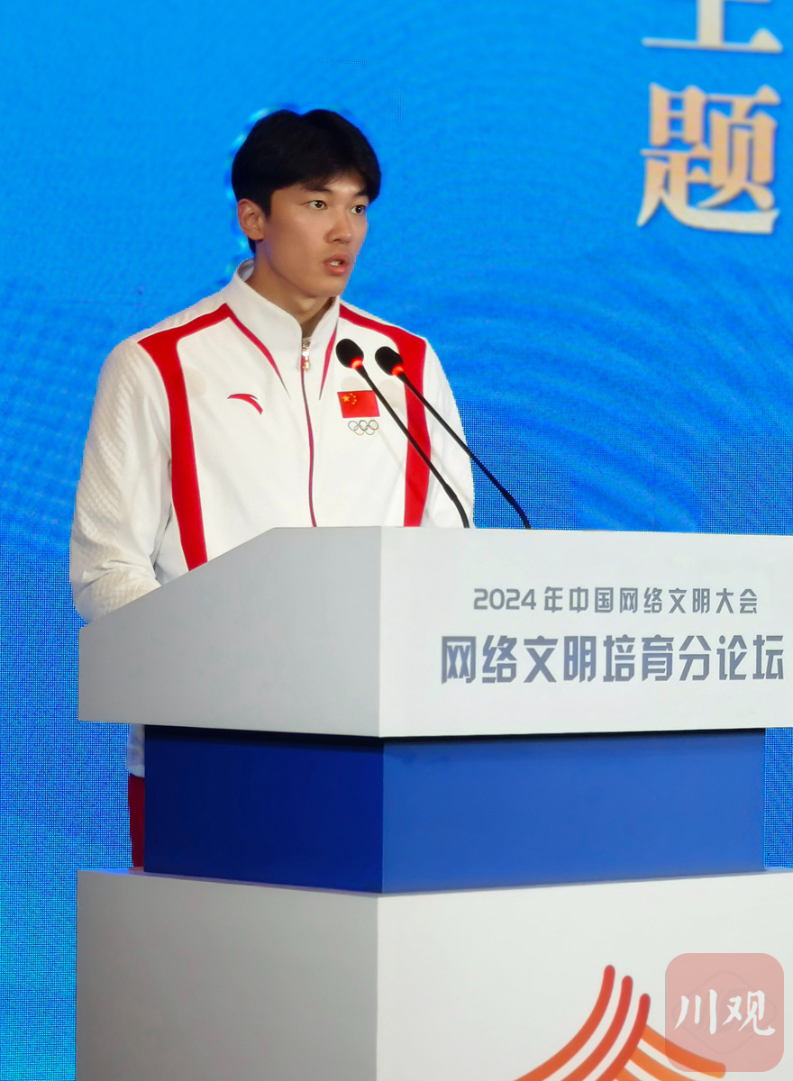 现场,中国国家游泳队运动员汪顺也分享了自己对网络文明建设的看法。谈及网络水军、畸形饭圈文化、抹黑英雄、造谣生事等恶劣事件时,汪顺认为,这些不仅危害了年轻一代的身心健康,更不利于良好社会氛围的营造。而处在成长关键期的青少年,通过正能量的网络内容汲取和学习,才有助于塑造完整的人格和素质形象。
