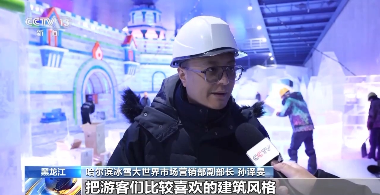 哈尔滨冰雪大世界市场营销部副部长 孙泽旻:通过这种业态补充,把游客们比较喜欢的建筑风格和内容放到室内场馆里。比如说像很多游客朋友都非常喜欢看冰雪大世界在室外时的欧式建筑,比如说冰滑梯,让我们南方游客朋友们在夏天也可以感受到冰滑梯带给我们的乐趣。