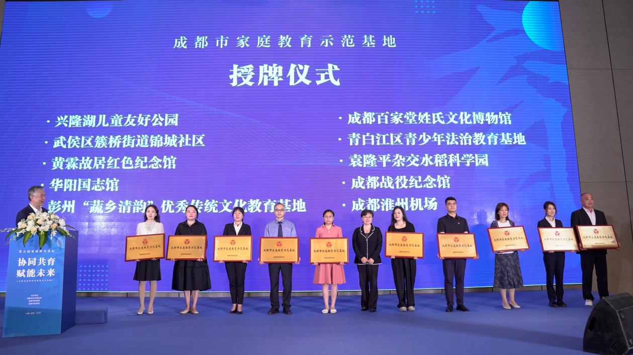成都市人民政府副市长林楠出席讲坛,并为“成都市家庭教育示范基地”代表授牌。