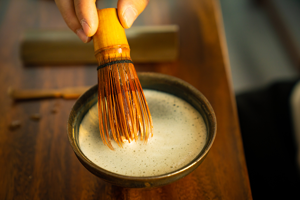 并用竹筅(xiǎn)搅打使其浮起泡沫