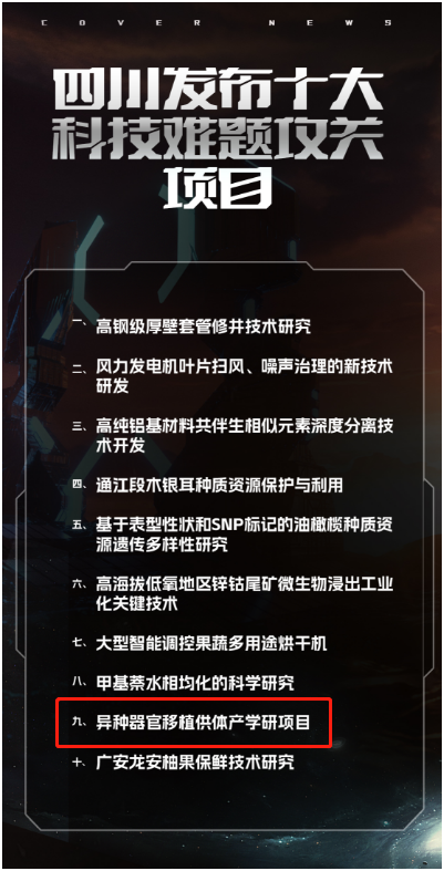 2月15日,第二届科创中国•天府科技云服务大会(简称“科创会”)上,四川发布了十大科技难题攻关项目,“异种器官移植供体产学研项目”上榜。值得一提的是,首届科创会上,“异种器官移植供体猪的开发”同样位列当年四川十大科技难题攻关项目。连续两届上榜,足见四川科技界对异种器官移植的重视,而名称上的细微变化,或许也反映出四川在这一领域的科技攻关进入了新阶段。