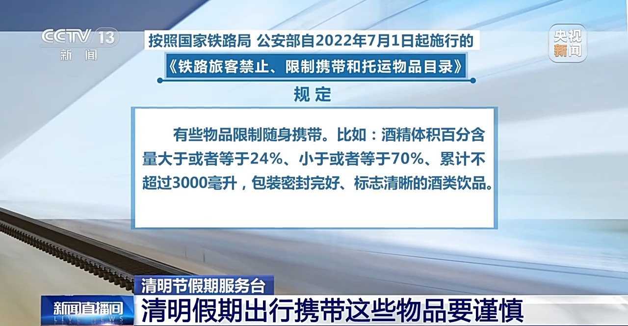 今年清明假期,铁路旅客出行高峰预计持续至4月7日。清明是旅客祭祖、踏青的节日,往年清明,都频繁出现旅客带了违禁品想要上车的情况。那么,哪些物品是禁止携带乘车的呢?