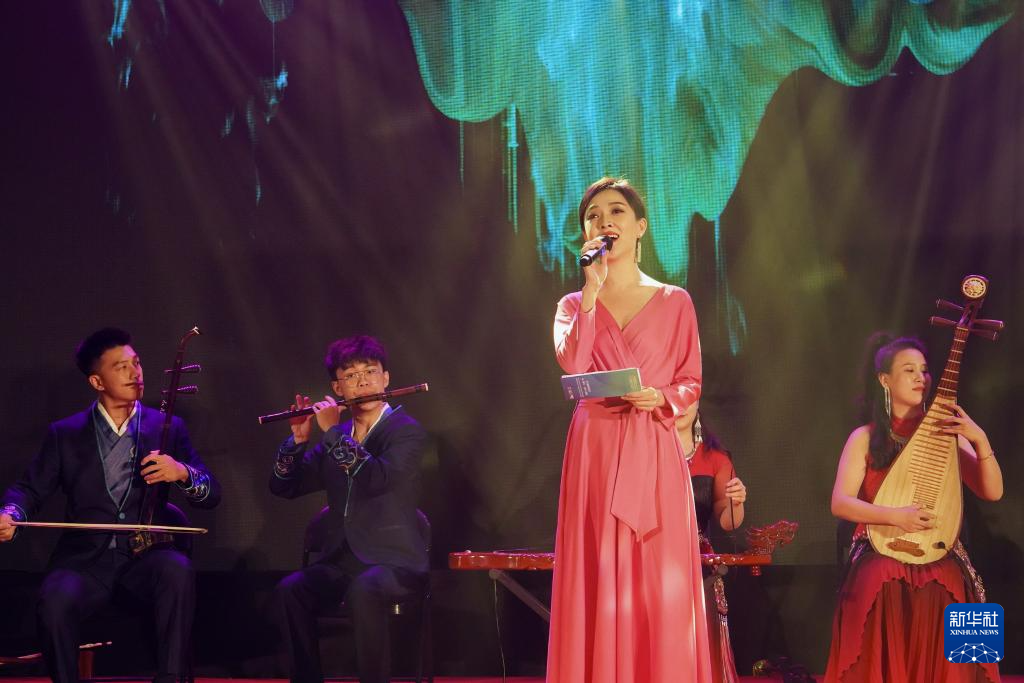 9月16日,在斯里兰卡首都科伦坡,演员在“天涯共此时-中秋诗会”活动上表演。新华社记者 伍岳 摄
