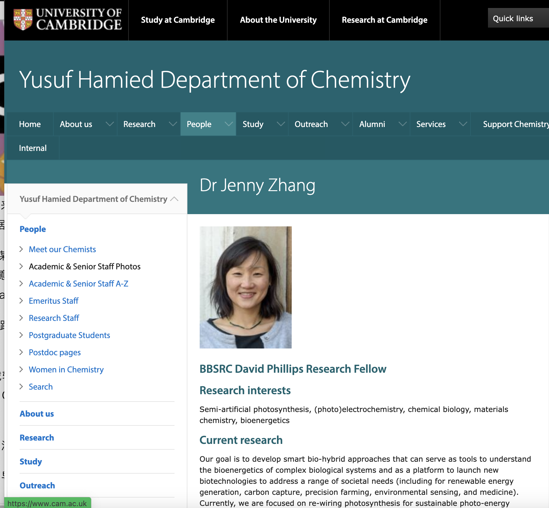 Jenny Zhang|悉尼大学生物无机化学博士,曾在耶路撒冷希伯来大学研发开发“氧化还原活性铂类抗癌剂”,并研究了它们在肿瘤模型中的生物分布/代谢,随后成为剑桥大学玛丽居里国际研究员,探索如何利用生物催化剂生产太阳能燃料。JennyZhang致力于开发将氧化还原酶(例如水氧化酶光系统 II)重新连接到称为“半人工光合作用”的新兴领域中的电极/半导体/其他蛋白质的方法,并获得了“RSC Felix Franks“生物技术奖章、2022年联合国教科文组织的科学女性可持续发展奖。