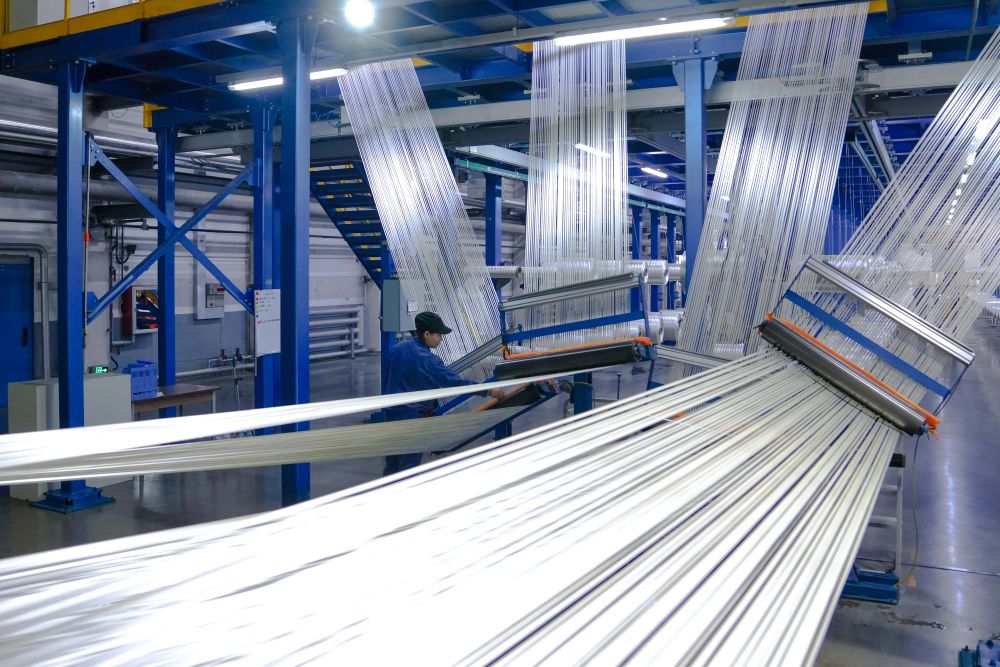 2025年2月2日,工人在吉林化纤集团国兴碳纤维有限公司碳化二车间整理碳纤维原丝。新春伊始,吉林化纤集团国兴碳纤维有限公司开足马力忙生产、赶订单。新华社记者 许畅 摄