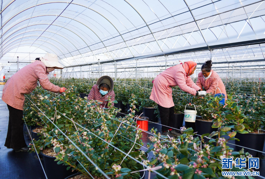 村民在蓝莓基地务工(资料图)。新华网发(大理州委宣传部 供图)