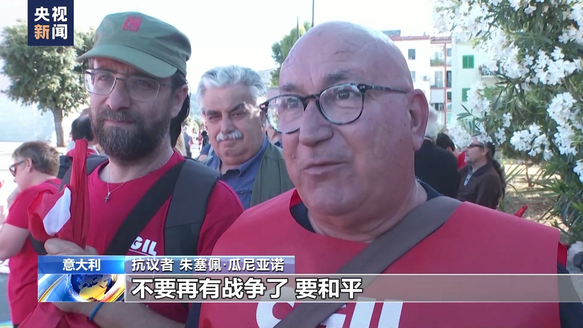 抗议者 朱塞佩·瓜尼亚诺:在我看来,现在正在发生的就是滥杀无辜。不要再有战争了,要和平,减少军事开支,增加对就业的支持,帮扶贫困饥饿人群。