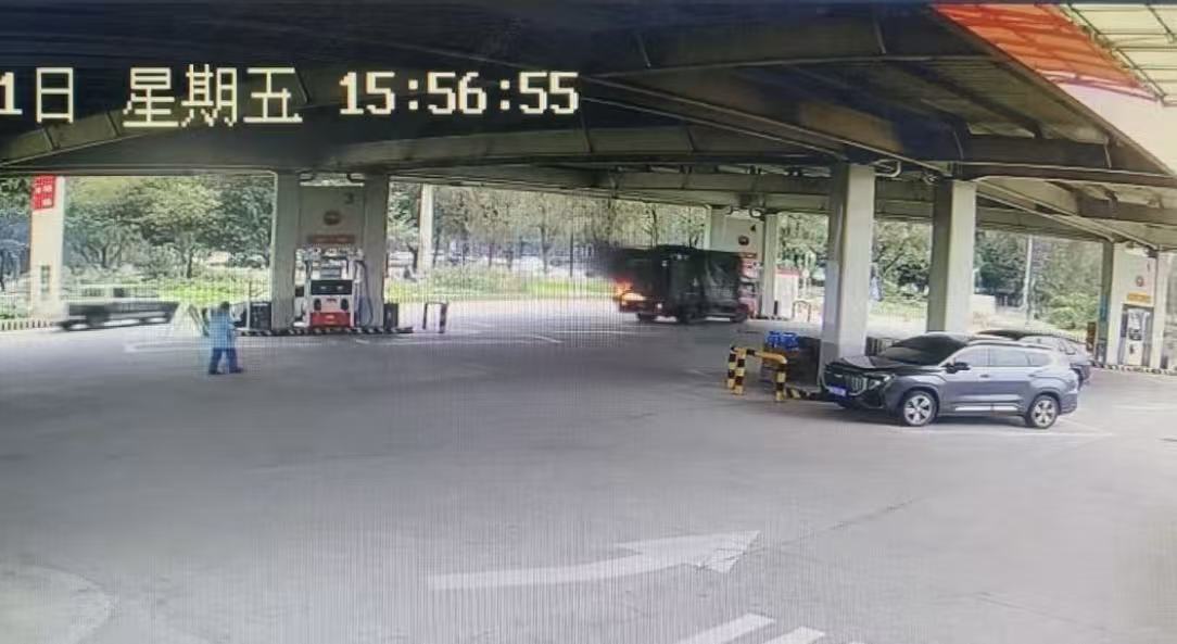 当日15时55分左右,一辆行驶中的货车尾部突然起火,火势迅速蔓延。驾驶员对此毫无察觉,正要驶入路边的加油站,准备加油。“加油站属于油气密集的高危区域,一旦明火与油气接触,极易引发爆炸燃烧,不仅会造成车辆损毁,更可能严重威胁加油站工作人员和周边群众的生命财产安全,后果不堪设想。”执法人员说。