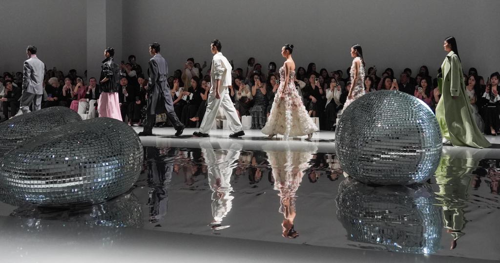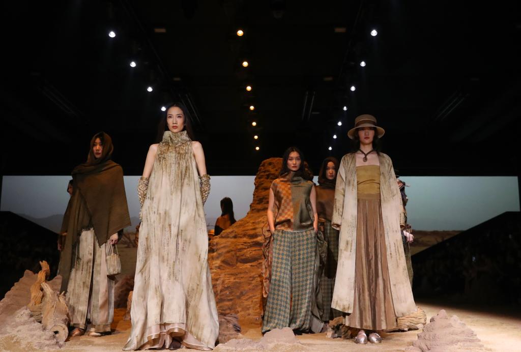 3月29日,模特在2025秋冬上海时装周上展示服装。新华社记者方喆 摄
