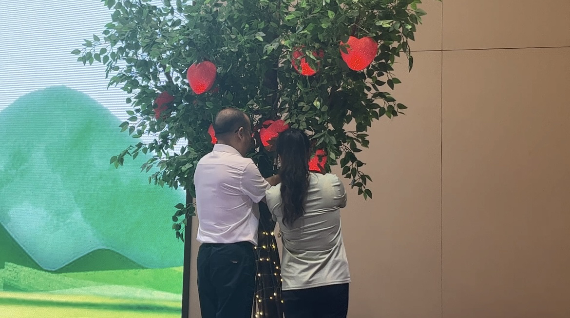 在活动现场,有一棵挂满爱心的盆栽树。每当一颗爱心被点亮,就有一个故事浮现。