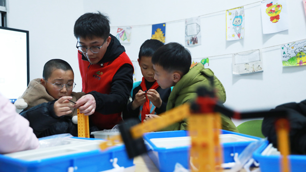 青年志愿者在“护苗学堂”带领孩子们进行兴趣拓展。王恩慧/摄