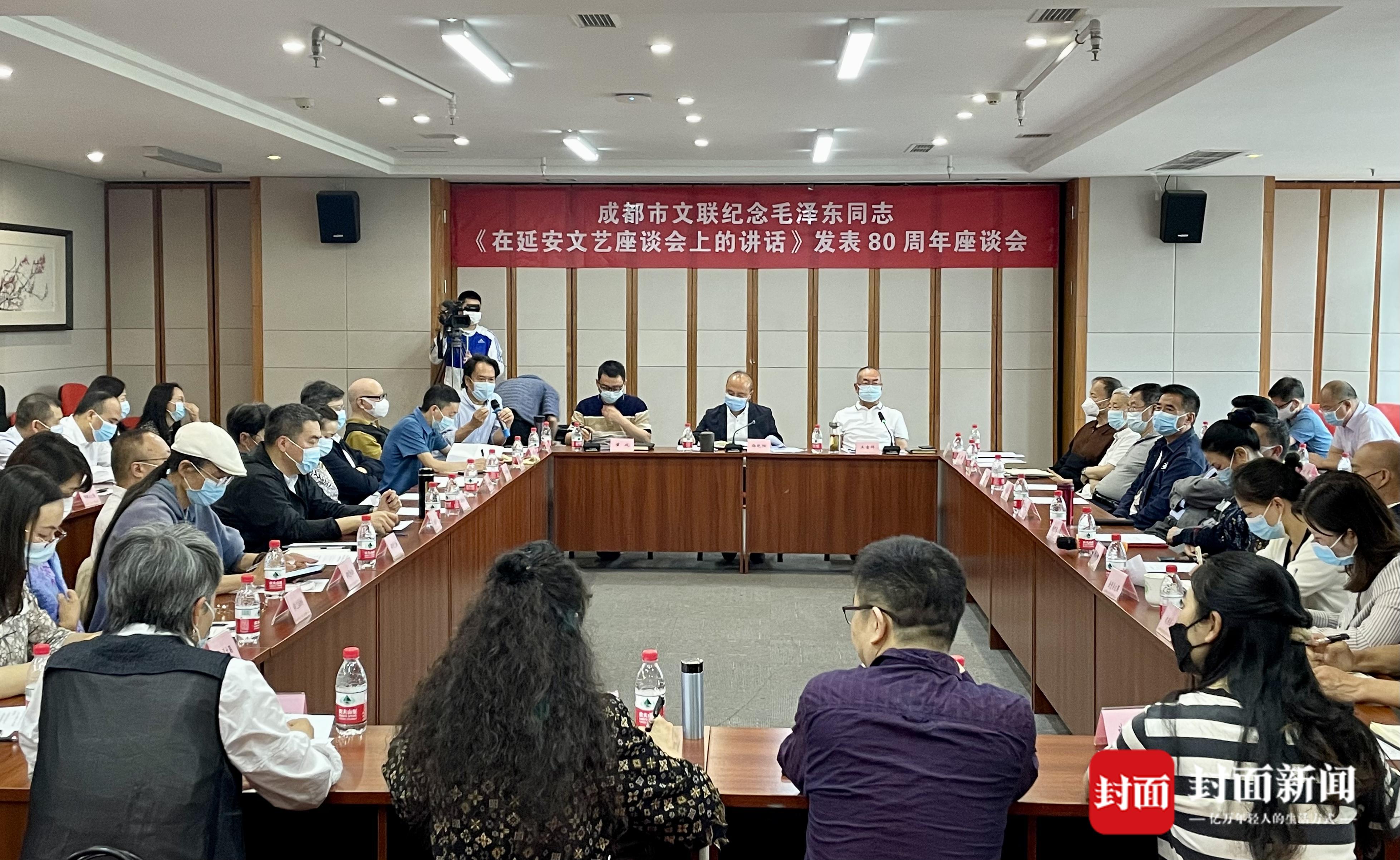 5月23日,成都市文联组织召开纪念毛泽东同志《在延安文艺座谈会上的讲话》(以下简称“《讲话》”)发表80周年座谈会,重温《讲话》精神,提出繁荣成都文艺事业的工作和创作思路。成都知名艺术家代表、市级文艺家协(学)会和区(市)县文联负责人代表、文艺两新代表作交流发言,市文联退休干部和部室、事业单位负责同志参加。