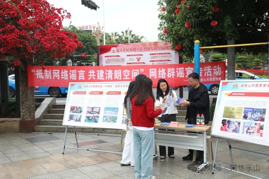五通桥区委网信办联合区委政法委、区公安分局等部门,在四望关广场开展网络安全和网络举报辟谣宣传。活动将不良信息举报、网络辟谣与国家安全教育有机结合,推动网络安全宣传走进基层、贴近群众。