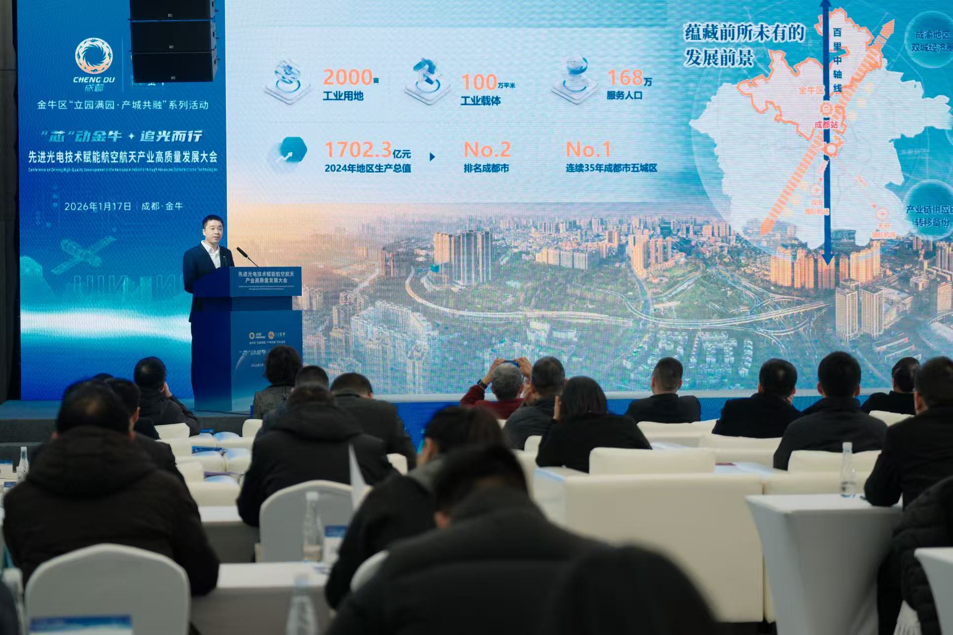 1月17日,先进光电技术赋能航空航天产业高质量发展大会在成都市金牛区成功举办。活动现场,金牛区光电产业金融全链赋能矩阵重磅亮相,多个产业化重点项目现场签约,半导体封装测试验证公共服务平台全面启动。
