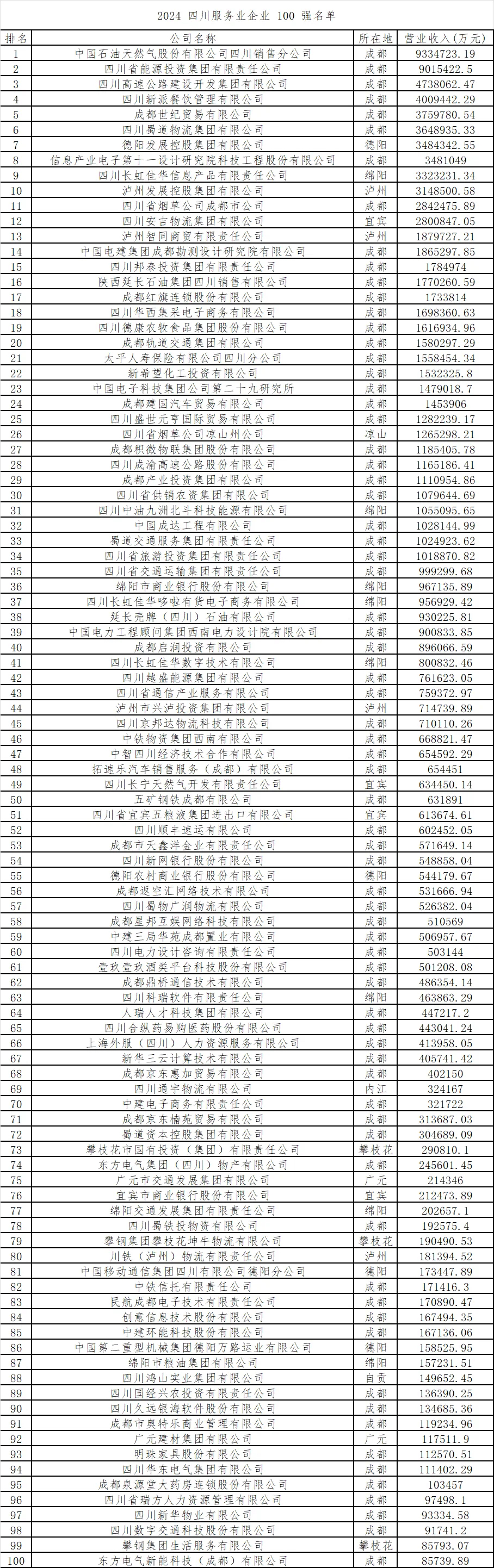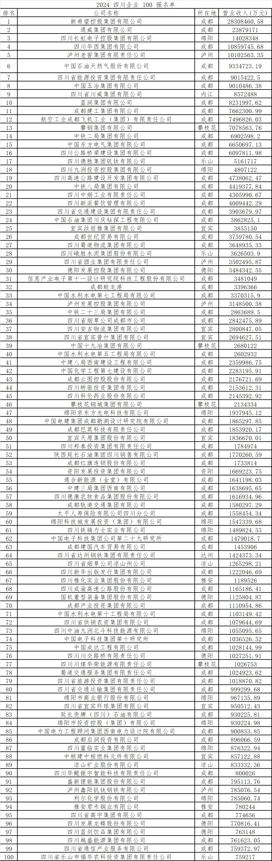 由四川省企业联合会、四川省企业家协会组织开展的四川100强企业排序、分析、发布工作已经进行了二十一年,并致力于将百强发布会打造成宣传优秀企业、研判发展形势、分享管理经验、交流合作共赢的优秀平台,努力在全社会营造关注企业家、支持企业发展的浓厚氛围,得到了社会各界的广泛关注和高度评价。