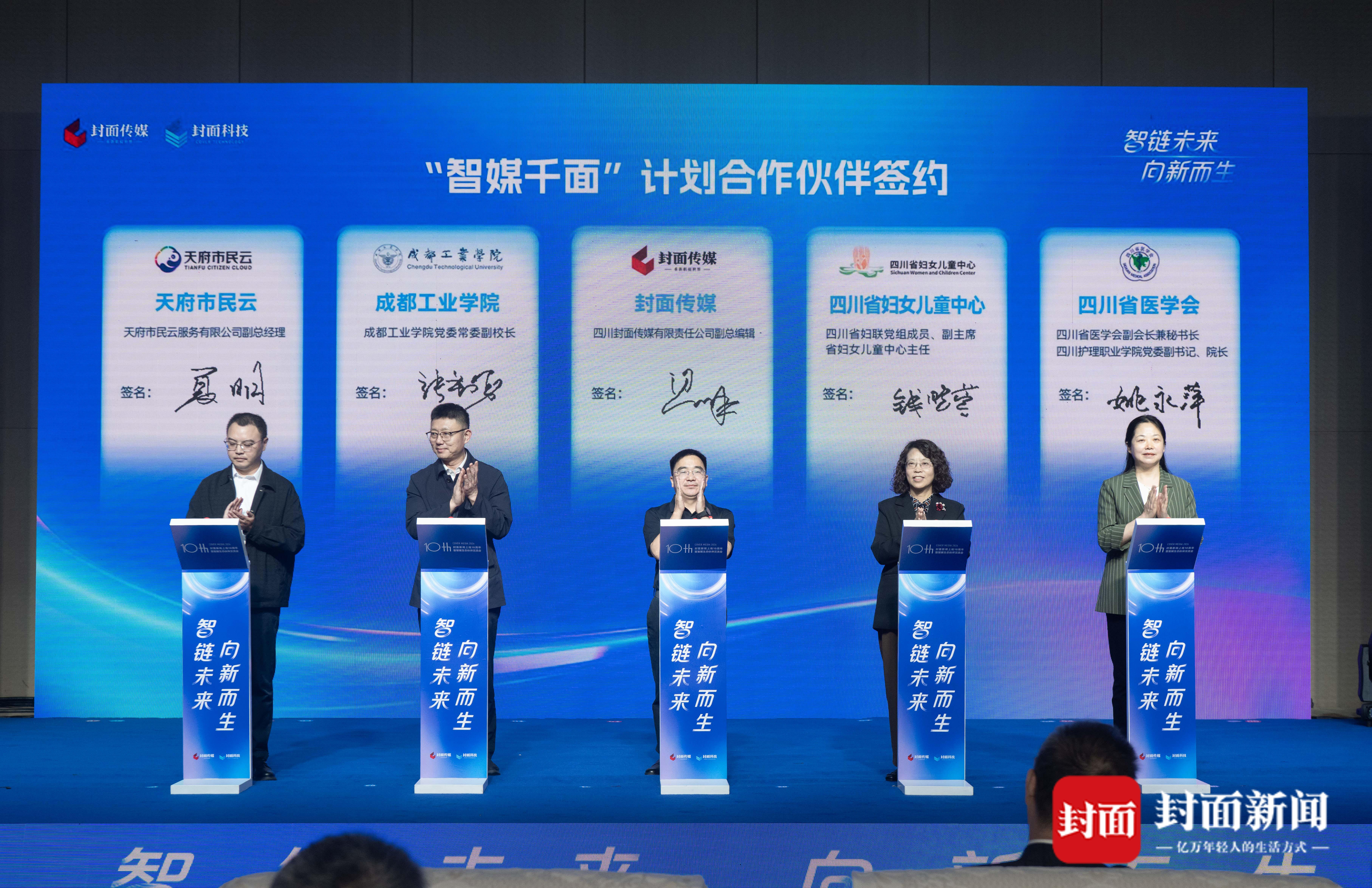 4月28日,封面新闻上线10周年暨智媒生态伙伴交流会在成都举行。智媒千面”计划合作伙伴签约。