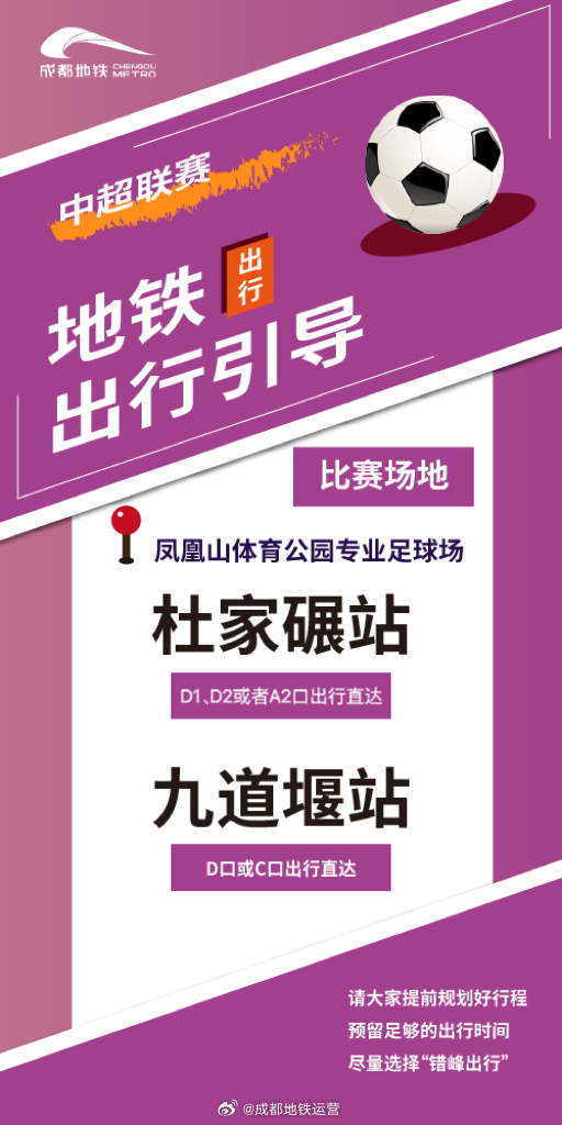 为方便市民乘客前往观赛,成都地铁提前整理中超观赛地铁出行指南,并通过成都地铁双微平台及小红书、抖音等持续向广大市民乘客推送出行指引。