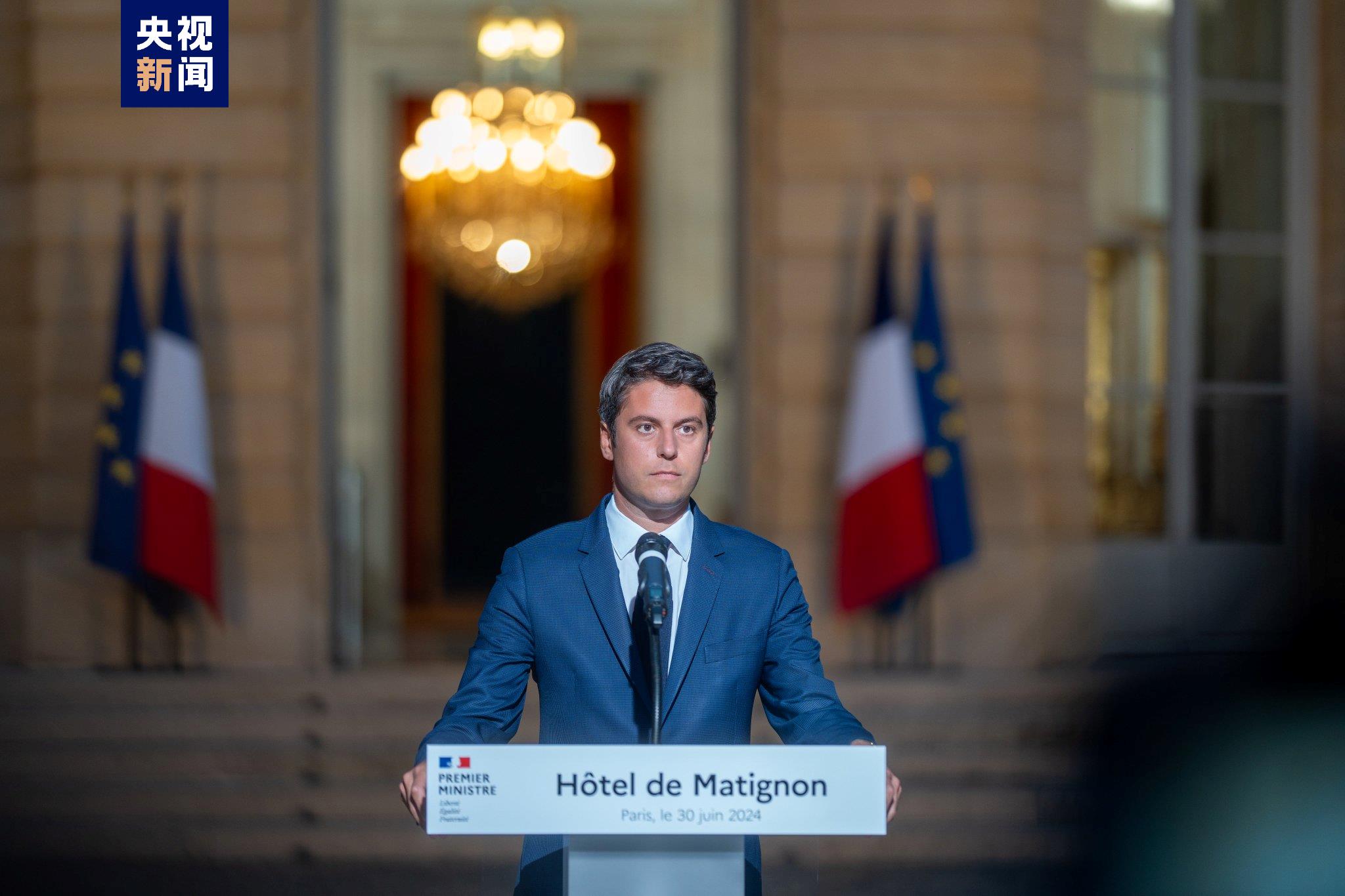法国总理阿塔尔当地时间7月7日晚在法国国民议会选举第二轮投票结果出炉后宣布,由于其所代表的政治团体并未获得多数议席,他将向总统马克龙递交辞呈。8日,阿塔尔向马克龙递交了辞呈。(总台记者 马瑾瑾)