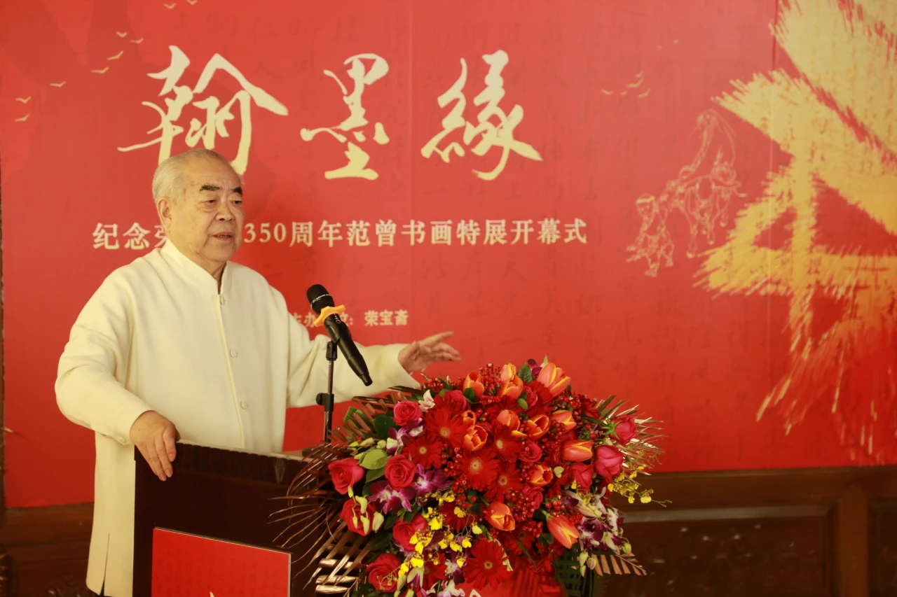 “翰墨缘——纪念荣宝斋350周年范曾书画特展”开幕式现场大咖云集,中国国家博物馆副馆长刘万鸣、北京大学艺术学院院长彭锋、著名表演艺术家濮存昕分别致辞。著名歌唱家廖昌永现场送上了一首《我和我的祖国》,以示祝贺。