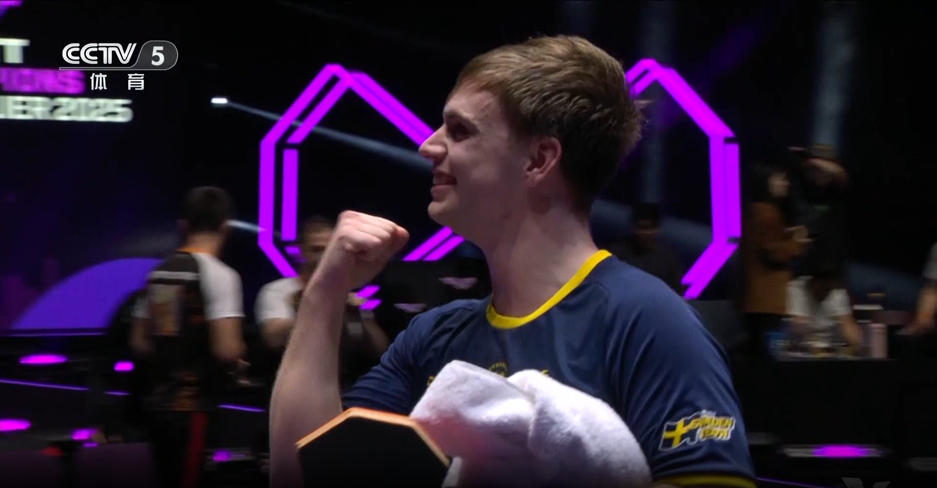 男单决赛,瑞典选手莫雷加德4-0战胜日本选手松岛辉空获得冠军,四局比分为11-9、11-8、11-7、11-9。